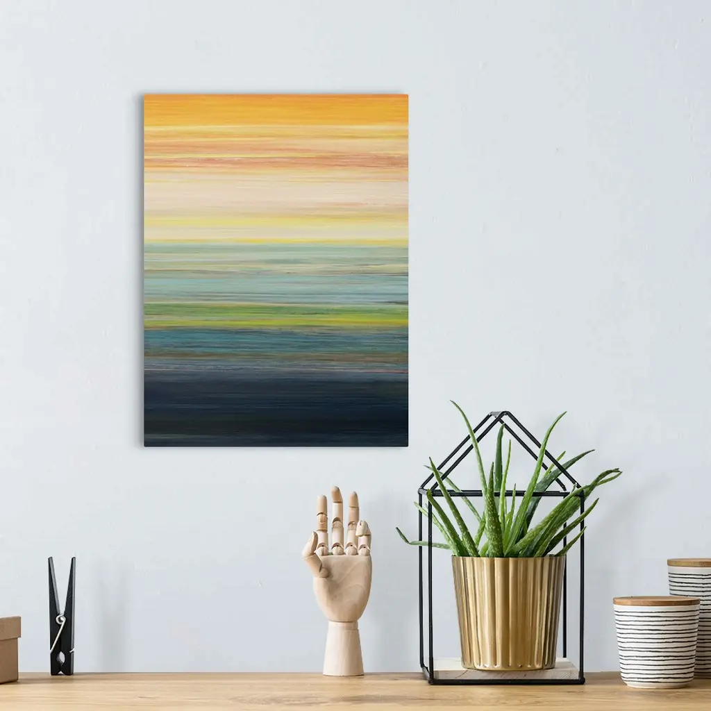 Contemporary abstract painting of layered colors resembling a sunset.