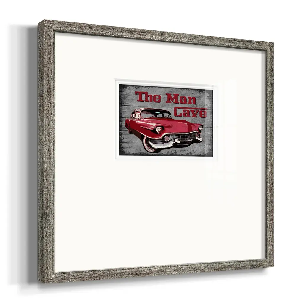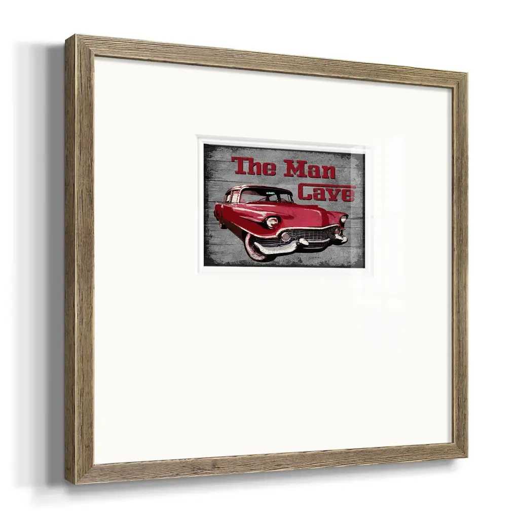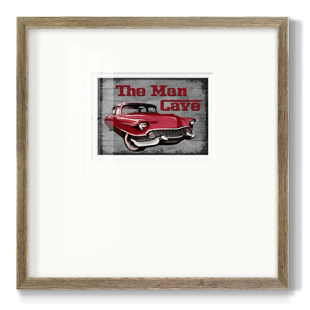 The Man CavePremium Framed Print A framed cold pressed paper print featuring superior double matting and quality frame. 2 SIZES AVAILABLE 16''X16''' - Overall Size 20''X20''' - Overall Size Each piece is made to order. Each piece comes with hanging hardware. Made in the USA Ready to Hang Giclee Paper Print Plexiglass Beveled Matt Board Double Matte Board