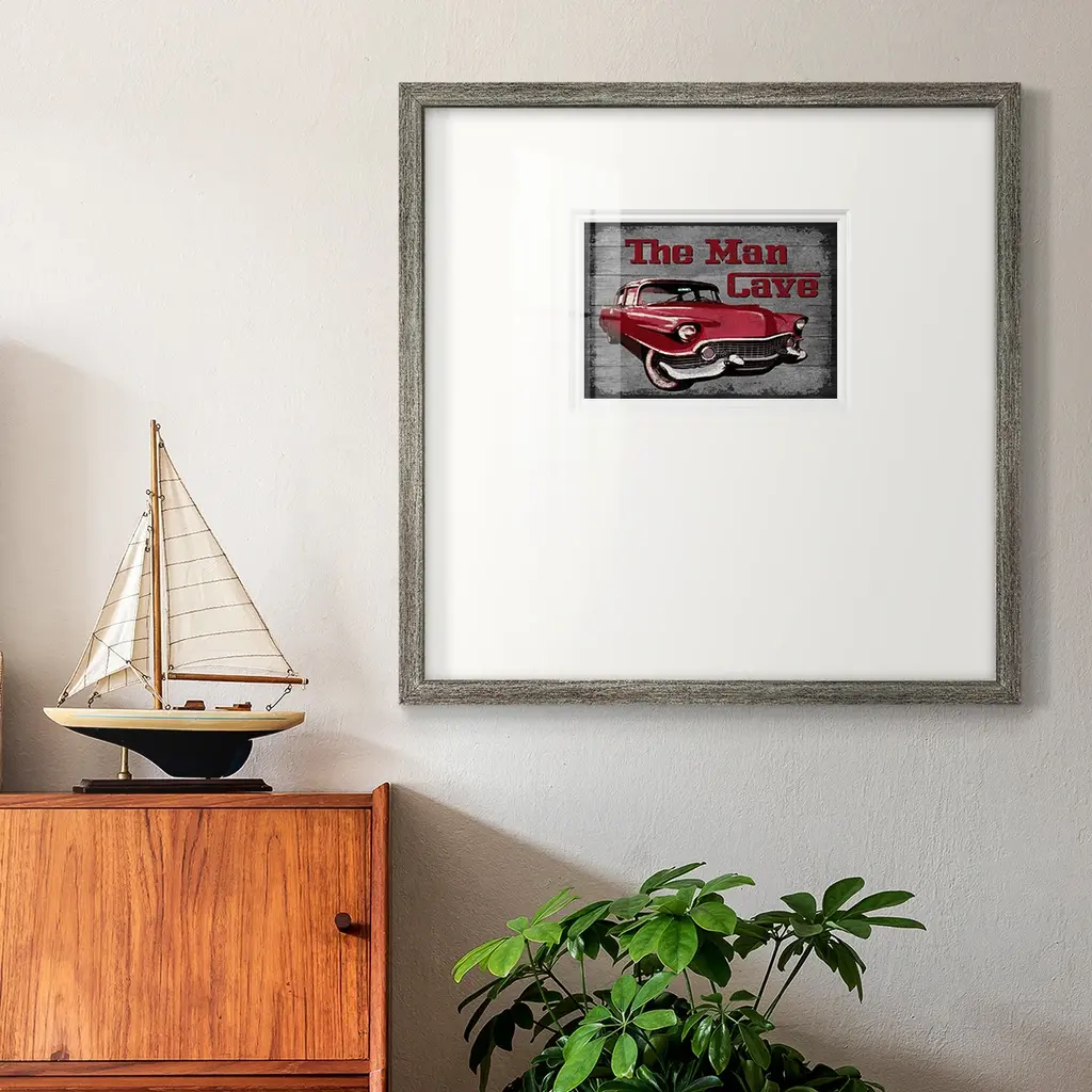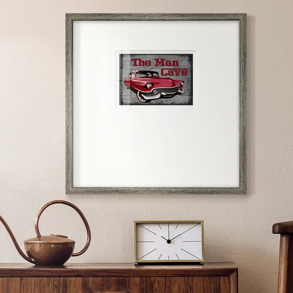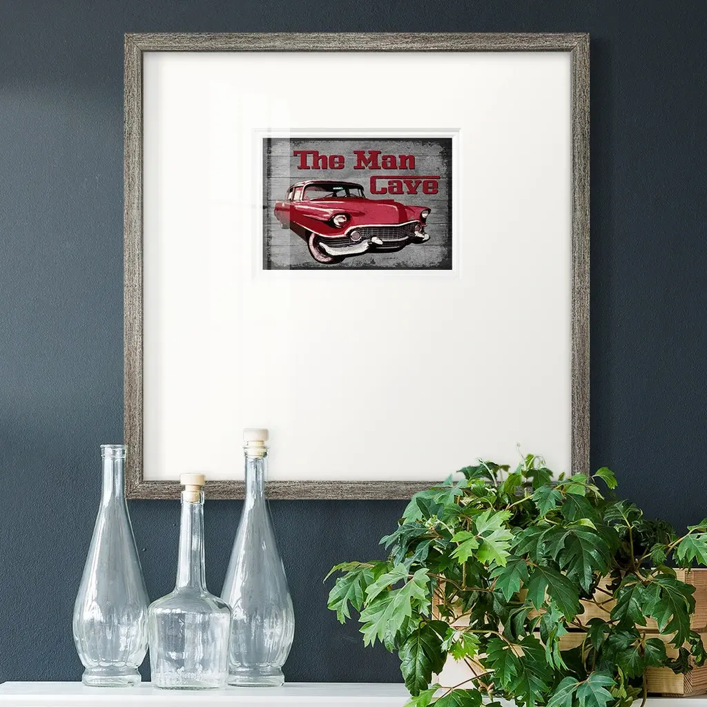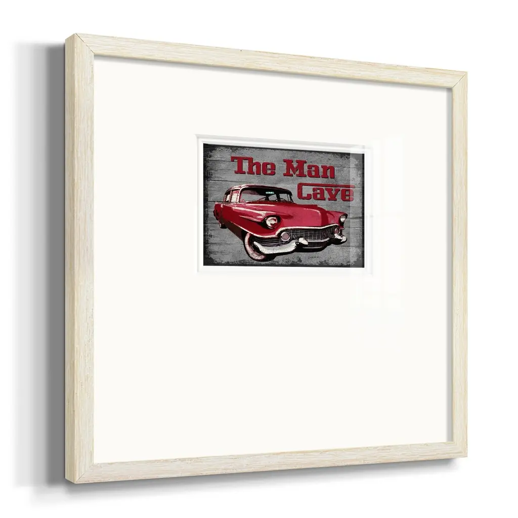 The Man CavePremium Framed Print A framed cold pressed paper print featuring superior double matting and quality frame. 2 SIZES AVAILABLE 16''X16''' - Overall Size 20''X20''' - Overall Size Each piece is made to order. Each piece comes with hanging hardware. Made in the USA Ready to Hang Giclee Paper Print Plexiglass Beveled Matt Board Double Matte Board