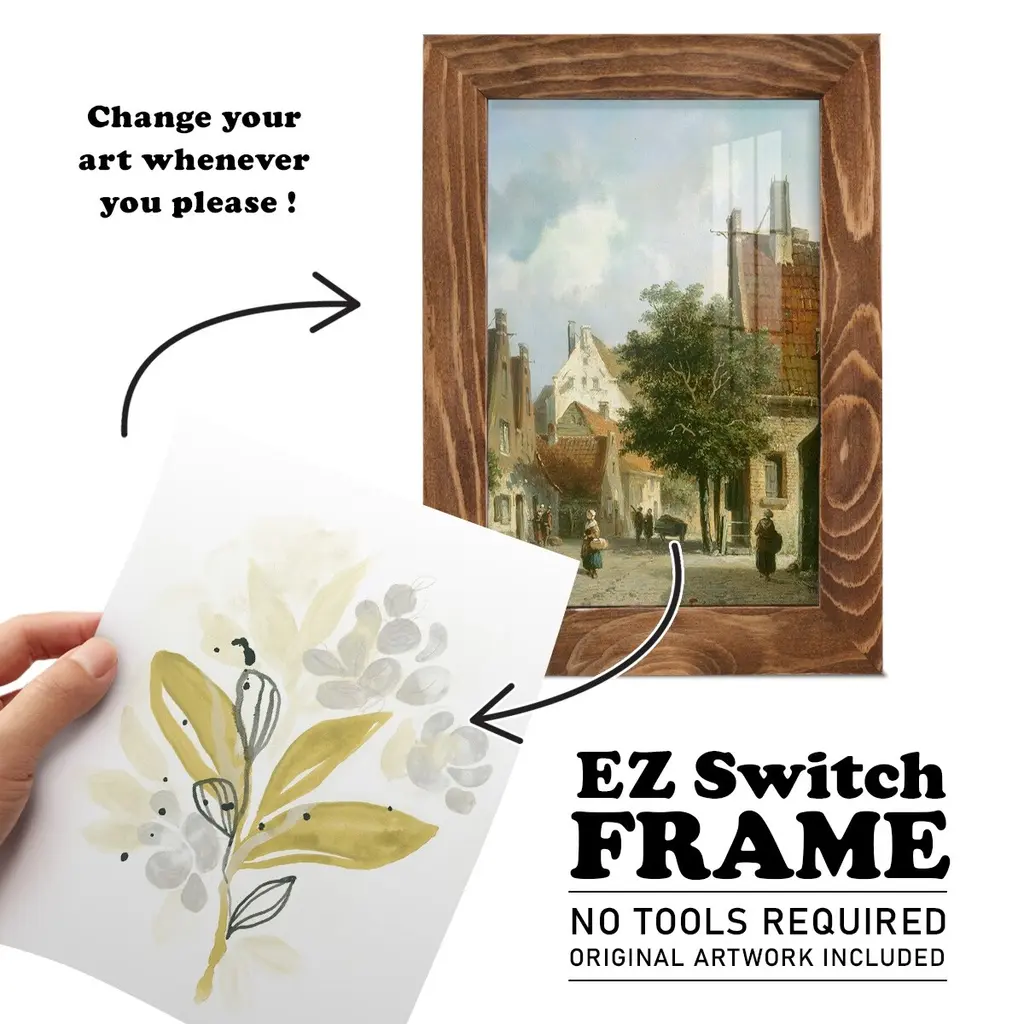 The Minimalist Garden II -EZ SWITCH Framed Print w/glass-Cherry Red A delightful, framed print. Featuring a solid wood frame with real wood glass. This premium print is giclee quality. In addition, every frame features a removable back and table top stand. This allows you to change your art in the future or to just stand the art on a table for a new look. We are sure you'll enjoy our new series of EZ SWITCH Framed Art. Solid Wood Frame Real Glass Removable / Replaceable Art Built in Tabletop Stand Sizes range from 4x6 up to 12x15 - buy just one or pair them up as sets as you see fit.