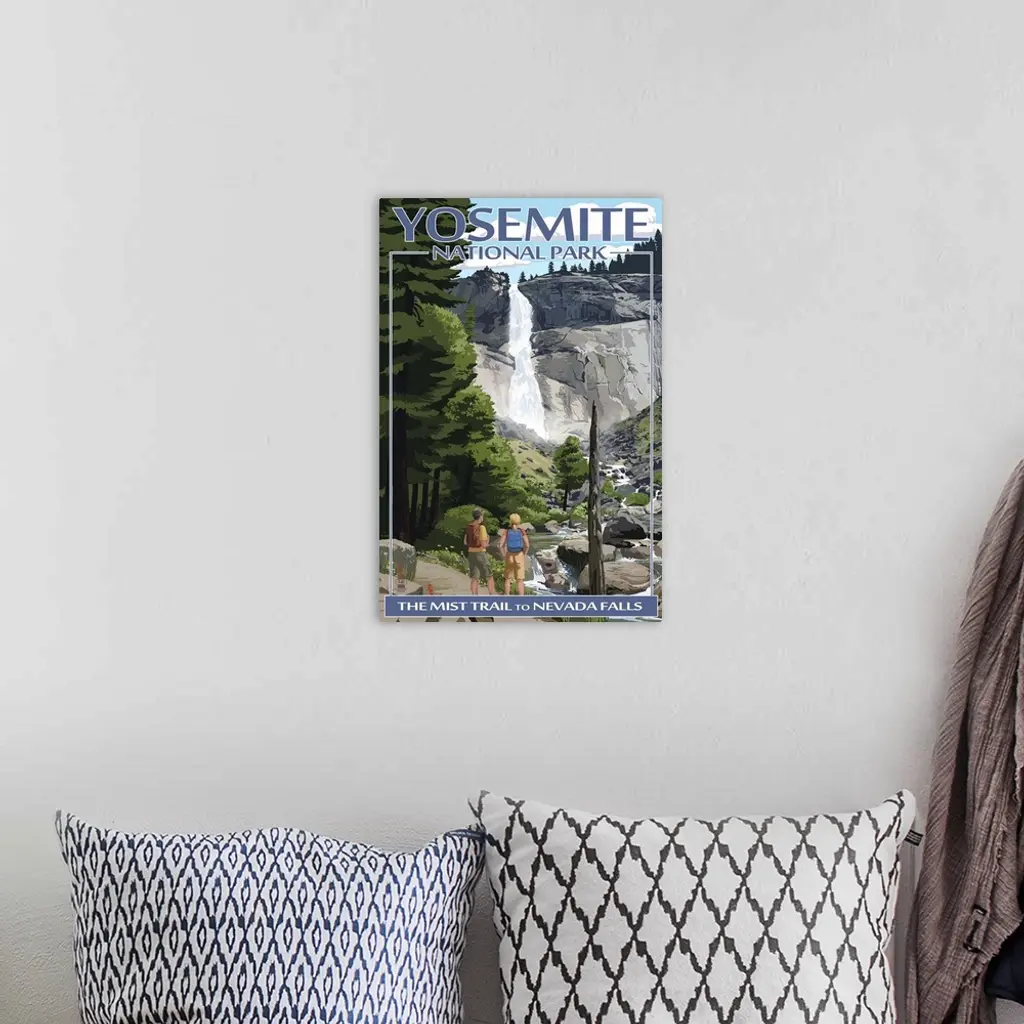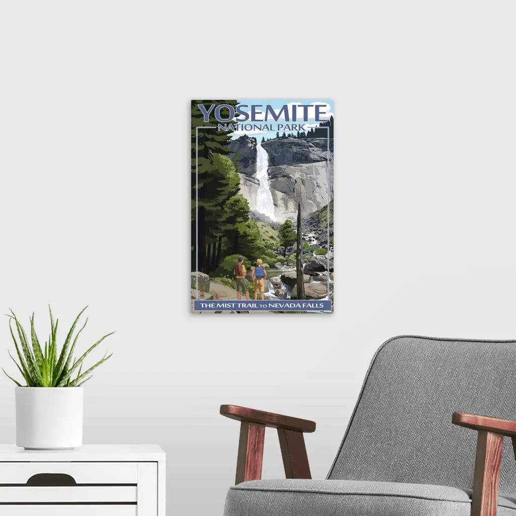 The Mist Trail - Yosemite National Park, California: Retro Travel Poster wall art for home and office decor. Discover canvas art prints, photos, mural, big canvas art and framed wall art in GreatBigCanvas.com's varied collections.