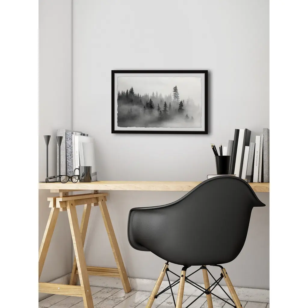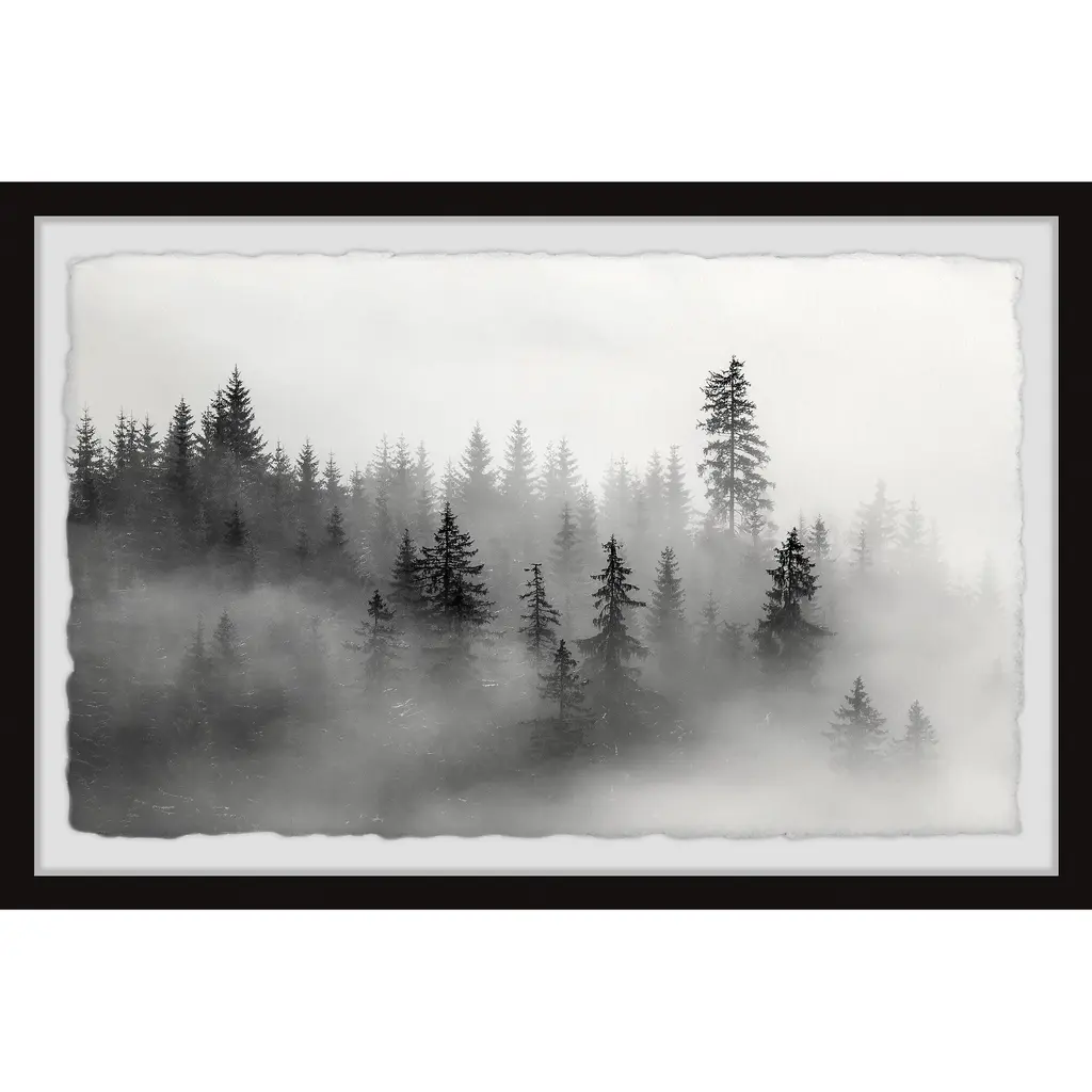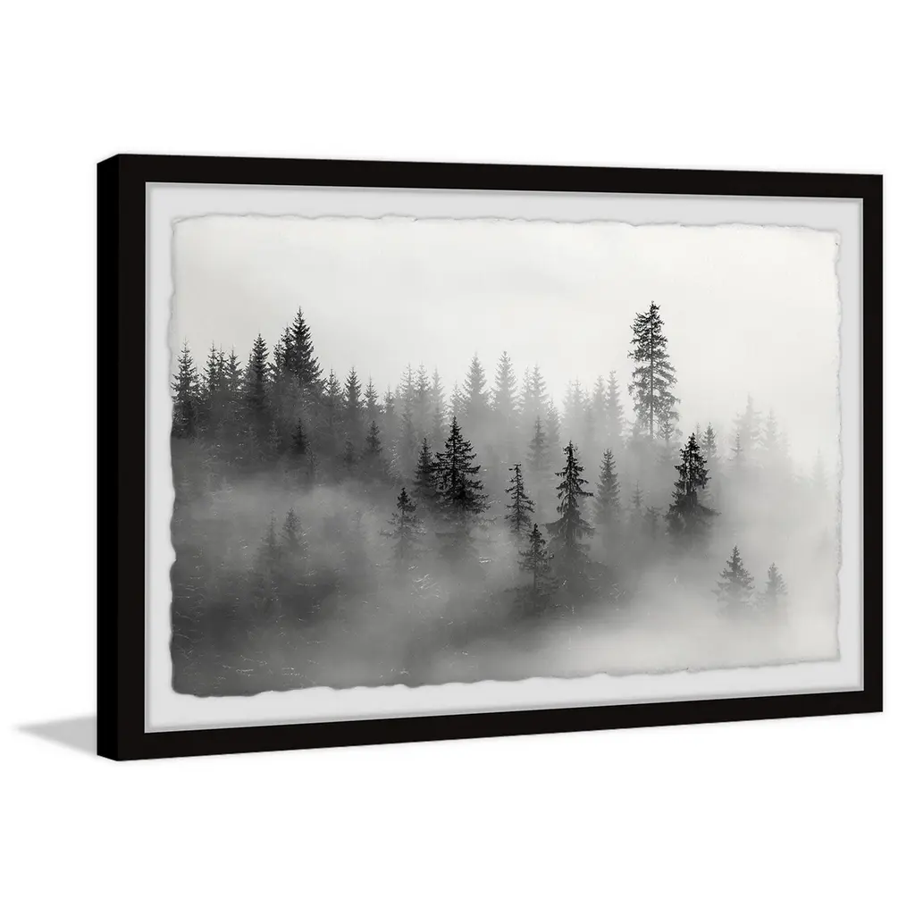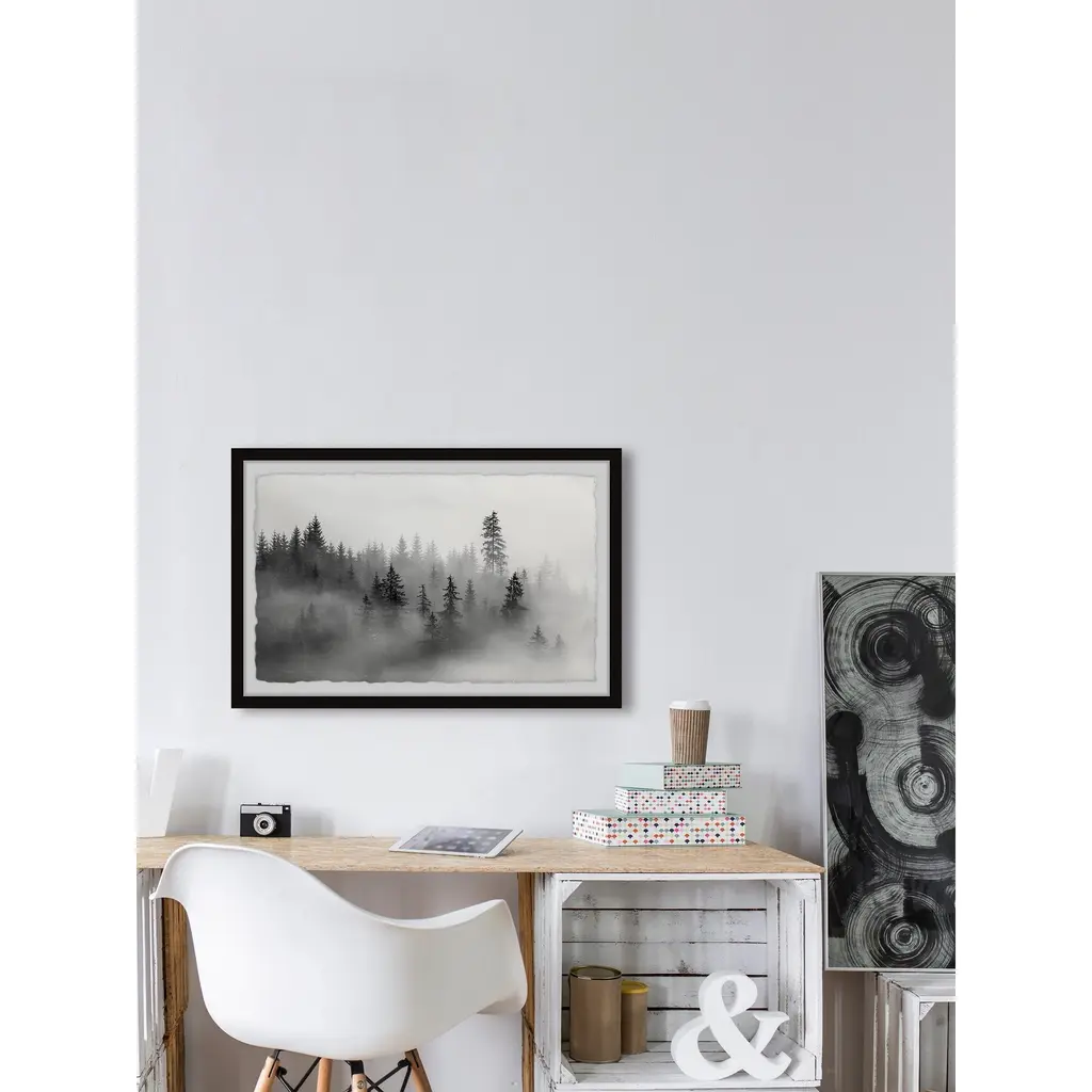 A monochrome foggy forest with trees peeking into view. This mysterious piece will accent any room beautifully as it adds a touch of misty wonder. Proudly printed in the USA, this piece is printed on high quality archive paper and professionally hand-framed. With wall-mounting hooks included, this artful accent is ready to hang up as soon as it reaches your front door. • Top quality Giclee print on high resolution Archive Paper • Hand cut deckled edges • High quality durable non-warping frame • Finished under shatter resistant plexiglass • Arrives ready to hang • Includes a certificate of authenticity • Printed in the USA