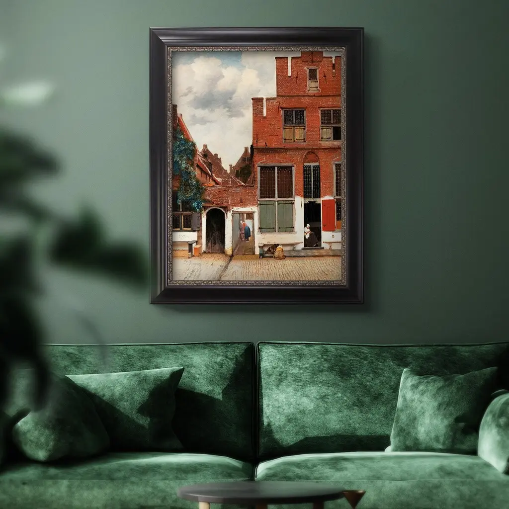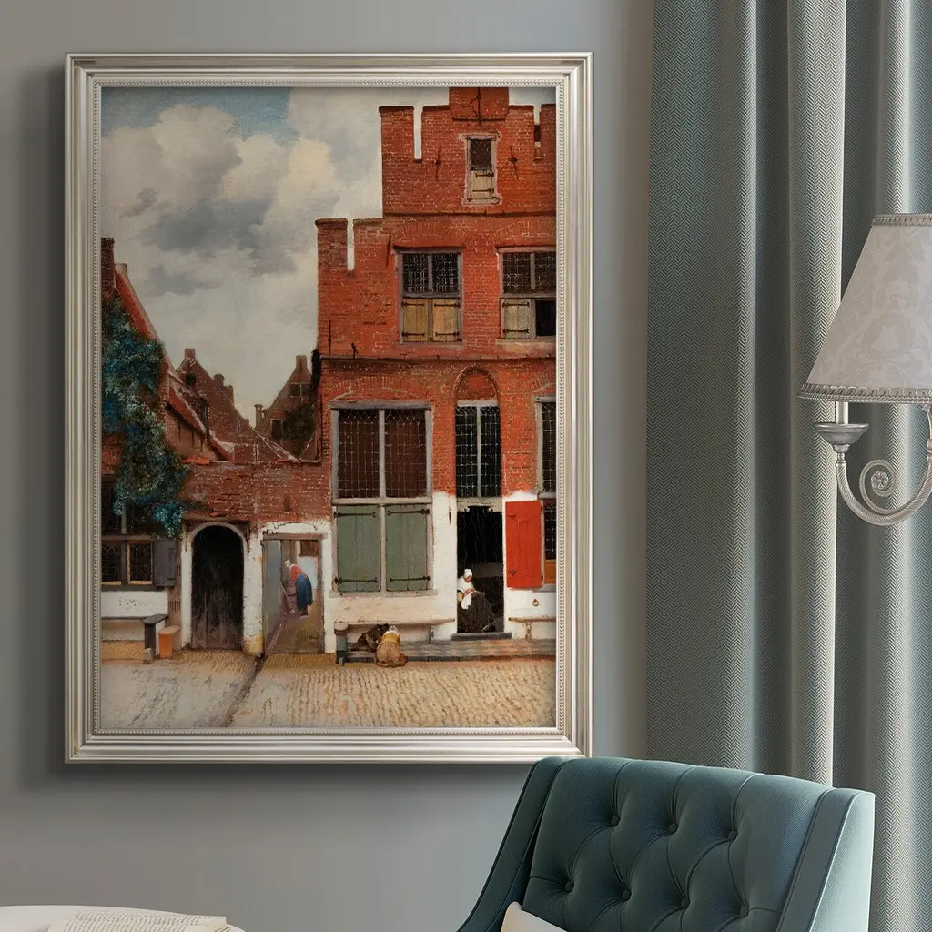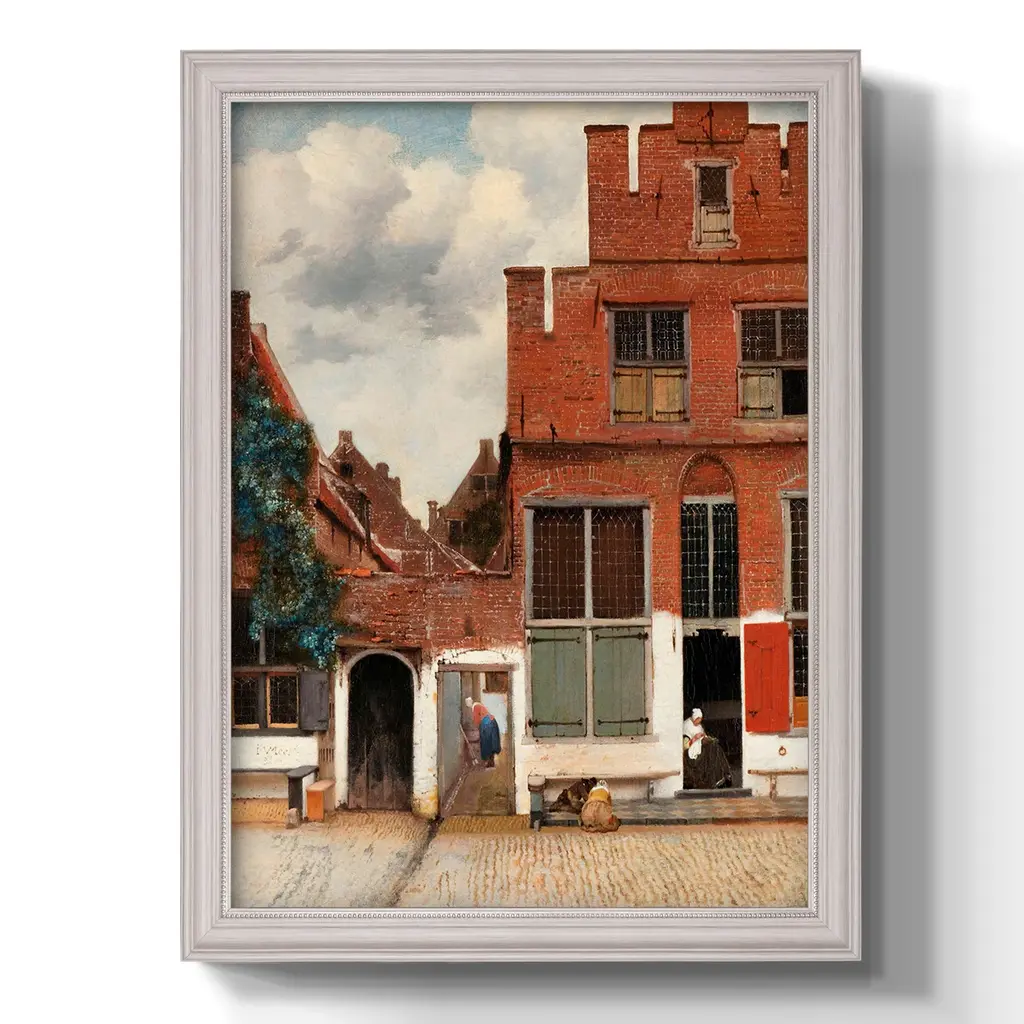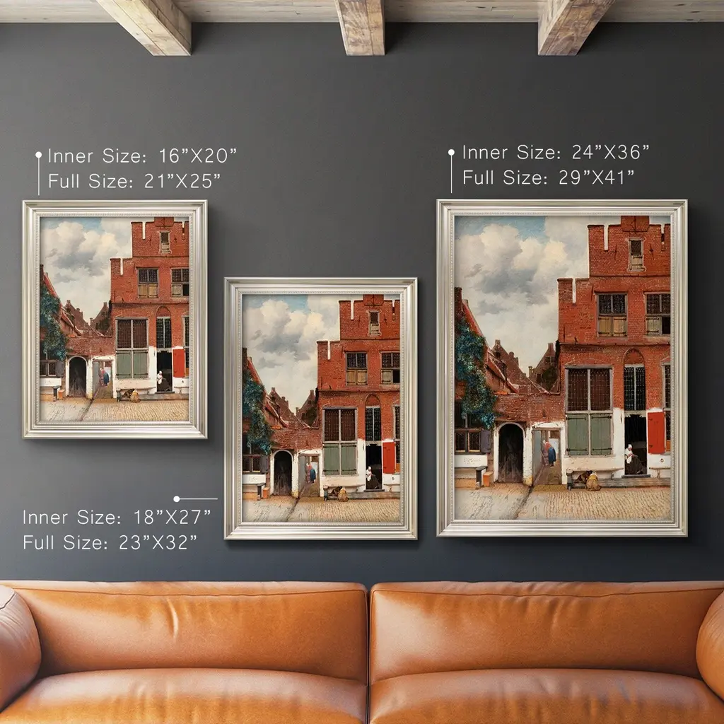 The narrow road Premium Framed Canvas- Ready to Hang A Premium Framed Canvas created to last. Framed in distressed wood and available in an array of sizes and colors Featuring a beveled a solid wood stretcher bar, each piece comes ready to hand 3 SIZES AVAILABLE 16''X20'' - Overall Size 18'X27'' - Overall Size 24''x36'' - Overall Size Each piece is made to order. Each piece comes with hanging hardware. Made in the USA Ready to Hang Giclee Paper Print Acrylic Glass Beveled Matt Board