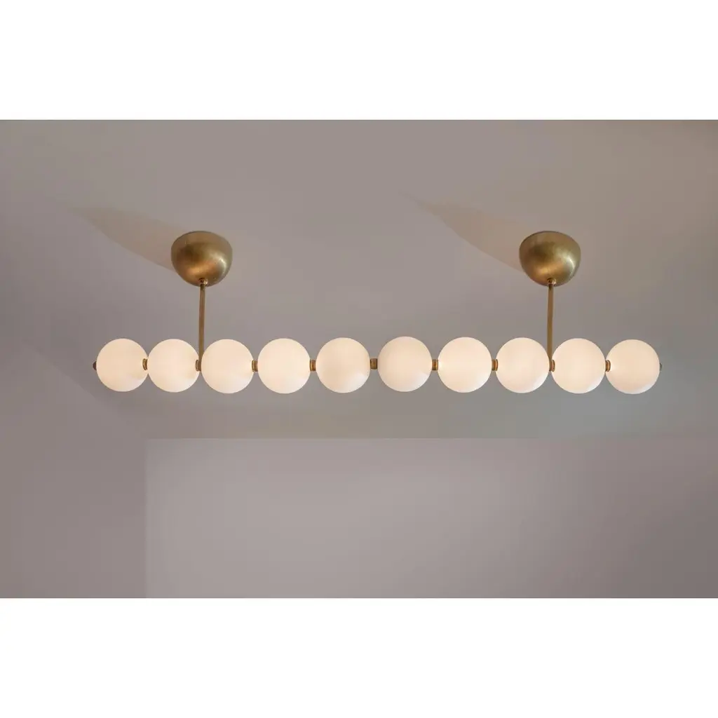 The Pearl Line by Ludovic Clément d'ArmontMaterials: Blown glass, brass joints, LEDsDimensions: D 12 x W 122 x H 67 cmThe Pearl line is a simple architectural element that helps structure a space. Depending on the shape you choose, it is symmetrical or asymmetrical, and it is a simple line of glass or a brooch-like jewel.Made in blown glass, with brass joints and LEDs.Every creation of Ludovic Clément d’Armont can be made to order in any requested dimensions.All our lamps can be wired according to each country. If sold to the USA it will be wired for the USA for instance.Ludovic Clément d’Armont is the creator of Semeur d’étoiles. That is the continuation of a family tradition of centuries of gentle glassmakers, painters, carpenters and artists. Both an engineer and an artist, he combines creative emotions with optical, electronic, thermal, environmental, electrical, chemical, color, energy, mechanical and medical considerations. His pleasure is do discuss with you to achieve the ideal piece.Ludovic presents his approach: “First, the simplicity of my work is based on a fundamental thought, nature and science are similar. My creative process marks the identity of mathematics and nature, the selective experimentation of the nature and human research lead to the same decisions.«That is why, analysis and experimentation mingle in my creation. Because the intelligence of nature is the long time of his experiments, just like that of man is the number of its research. The aesthetic result aims to illustrate and proclaim this, in a dreamy and amazed shout, showing the fusion of sciences and life. The place of man inside the Universe is thus clear: humanism becomes the demonstrated organization of society.»Semeur d’étoiles designs and manufactures lighting artworks: sculptures, chandeliers, lighting walls and ceilingsEco-friendly design is our DNA embarrassed by prestigious clients such as Vincent Darré, Bismut & Bismut, LVMH and State of Craft.