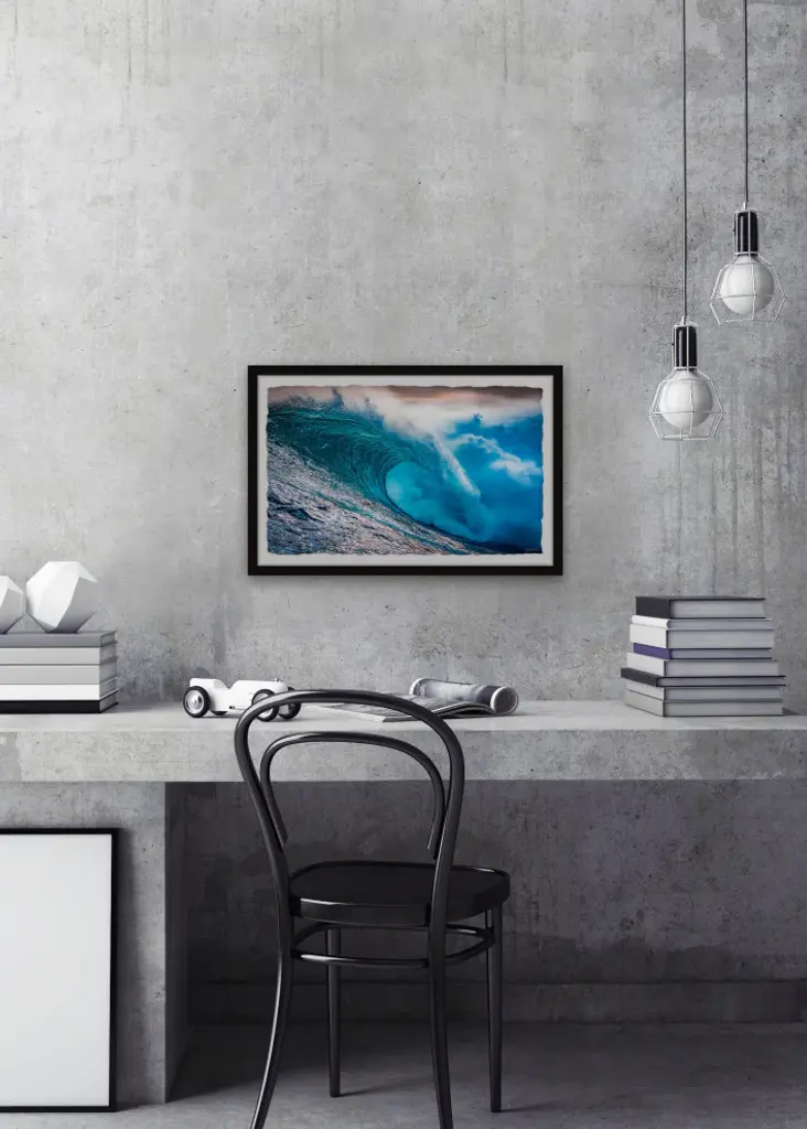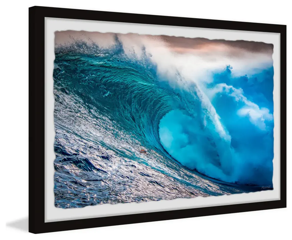 Great for surfers and ocean lovers, this coastal photographic print features a massive wave just before it crashes. Proudly printed in the USA, this piece is printed on high quality archive paper and professionally hand-framed. With wall-mounting hooks included, this artful accent is ready to hang up as soon as it reaches your front door.- Top quality Giclee print on high resolution Archive Paper- Hand cut deckled edges- High quality durable non-warping frame- Finished under shatter resistant plexiglass- Arrives ready to hang- Includes a certificate of authenticity- Printed in the USA