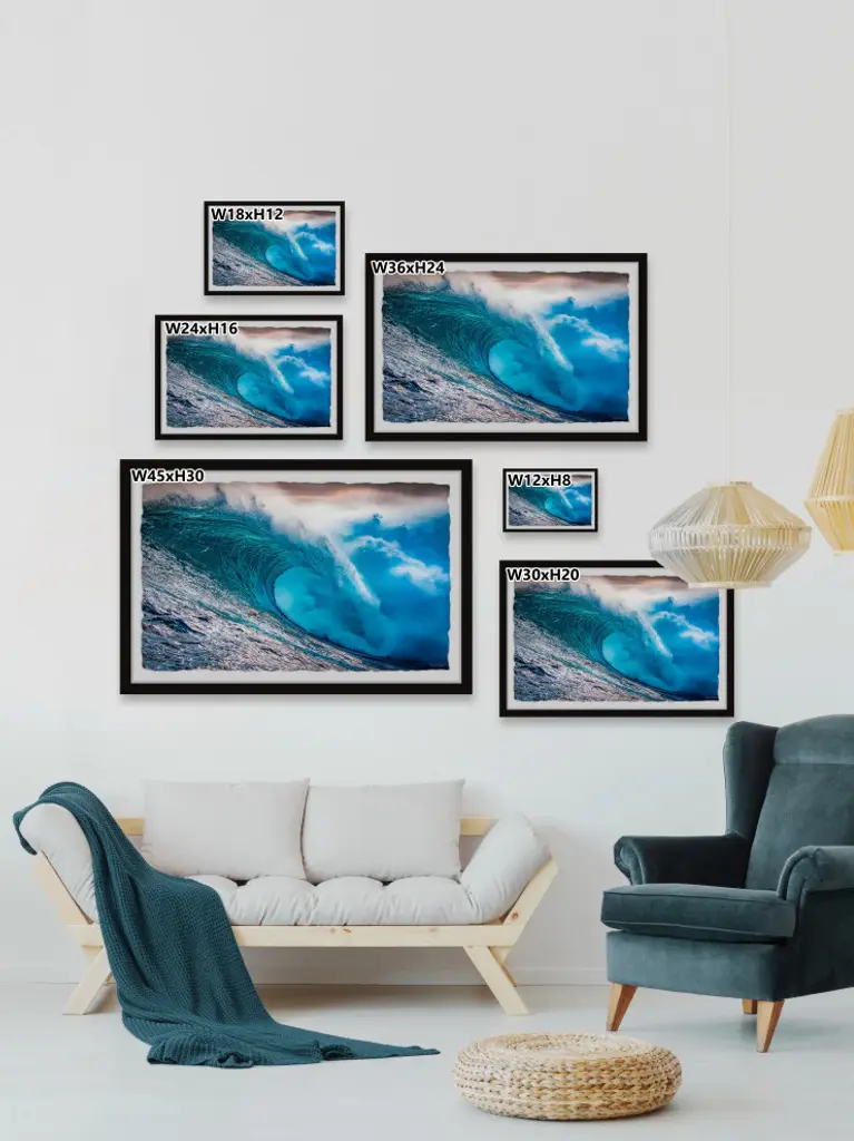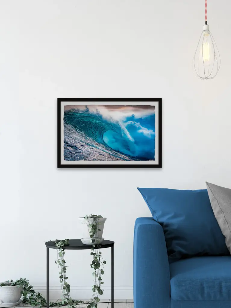 Great for surfers and ocean lovers, this coastal photographic print features a massive wave just before it crashes. Proudly printed in the USA, this piece is printed on high quality archive paper and professionally hand-framed. With wall-mounting hooks included, this artful accent is ready to hang up as soon as it reaches your front door.- Top quality Giclee print on high resolution Archive Paper- Hand cut deckled edges- High quality durable non-warping frame- Finished under shatter resistant plexiglass- Arrives ready to hang- Includes a certificate of authenticity- Printed in the USA