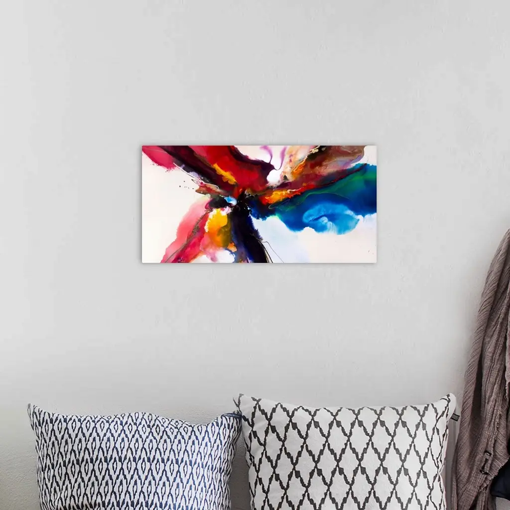Contemporary abstract painting using wild and vivid colors to create movement and depth.