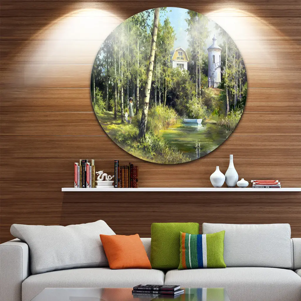 The River In The Spring, Landscape Large Disc Metal Wall Art, 36"