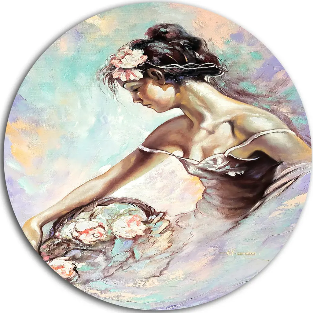 The River Over The Girl, Abstract Round Metal Wall Art, 11"