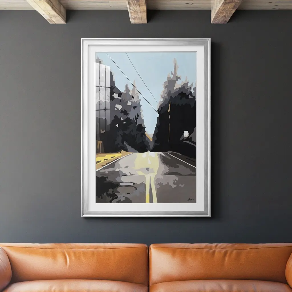 The Road Less Traveled Premium Framed Print - Ready to Hang A Premium Framed Print created to last. Framed in distressed wood and available in an array of sizes and colors Featuring a beveled a solid wood stretcher bar, each piece comes ready to hand 4 SIZES AVAILABLE 30.5''X42.5'' - Overall Size 26.5'X36.5'' - Overall Size 22.5''x30.5'' - Overall Size 18.5''x24.5'' - Overall Size Each piece is made to order. Each piece comes with hanging hardware. Made in the USA Ready to Hang Giclee Paper Print Acrylic Glass Beveled Matt Board