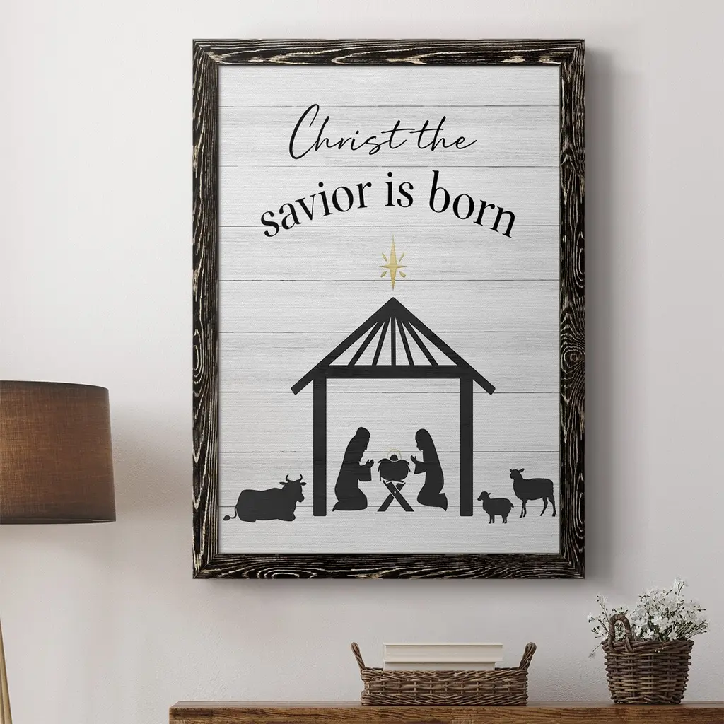 The Savior Is Born-Premium Framed Canvas - Ready To Hang - 27.5x37.5 - Grey