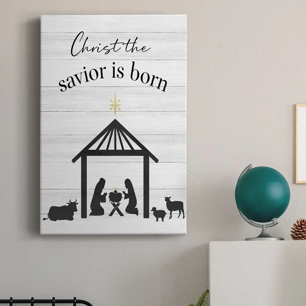 The Savior is Born Premium Gallery Wrapped Canvas - Ready to Hang A premium hand stretched gallery wrapped canvas print created to last. Featuring a beveled a solid wood stretcher bar, each piece comes ready to hand 6 SIZES AVAILABLE 8''X12'' - Overall Size 12''X18'' - Overall Size 18''X27'' - Overall Size 24''x36'' - Overall Size 32''x48'' - Overall Size 40''x60'' - Overall Size Each piece is made to order. Built to Last Each piece comes ready to hang Solid wood stretcher Fade and Water resistant Made domestically