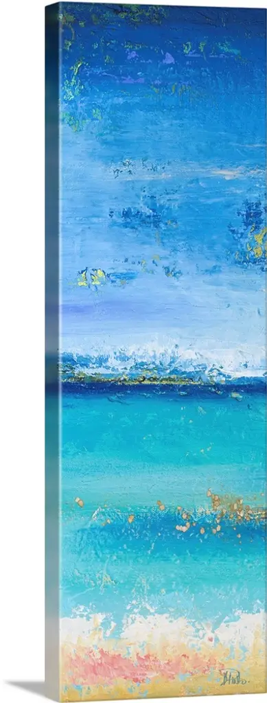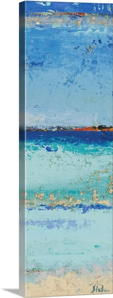 Abstract painting of a light blue colorscape resembling the ocean from a beach view.