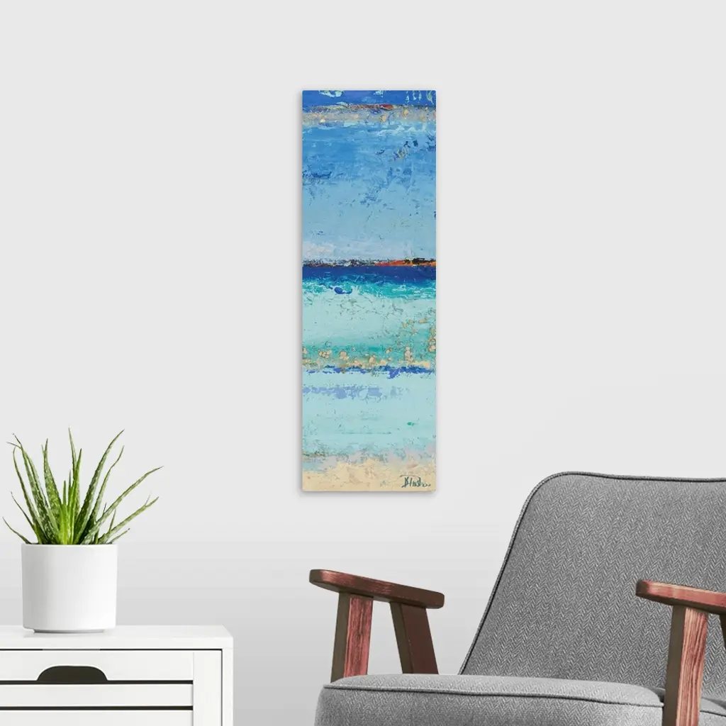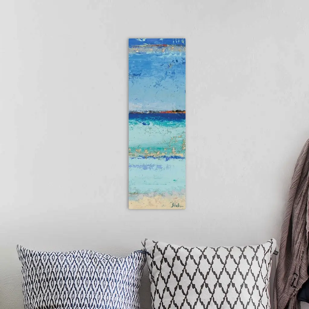 Abstract painting of a light blue colorscape resembling the ocean from a beach view.