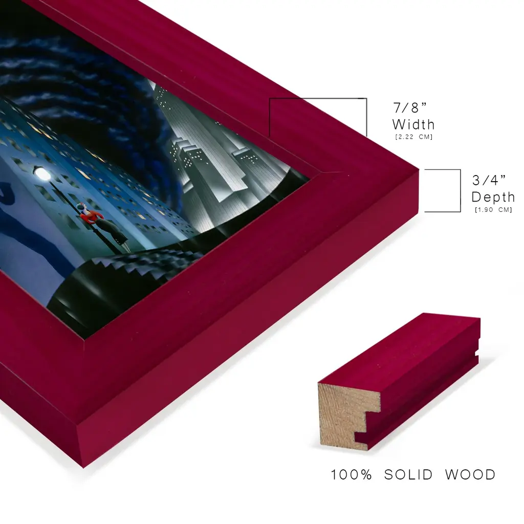 The Shadow -EZ SWITCH Framed Print w/glass-Cherry Red A delightful, framed print. Featuring a solid wood frame with real wood glass. This premium print is giclee quality. In addition, every frame features a removable back and table top stand. This allows you to change your art in the future or to just stand the art on a table for a new look. We are sure you'll enjoy our new series of EZ SWITCH Framed Art. Solid Wood Frame Real Glass Removable / Replaceable Art Built in Tabletop Stand Sizes range from 4x6 up to 12x15 - buy just one or pair them up as sets as you see fit.
