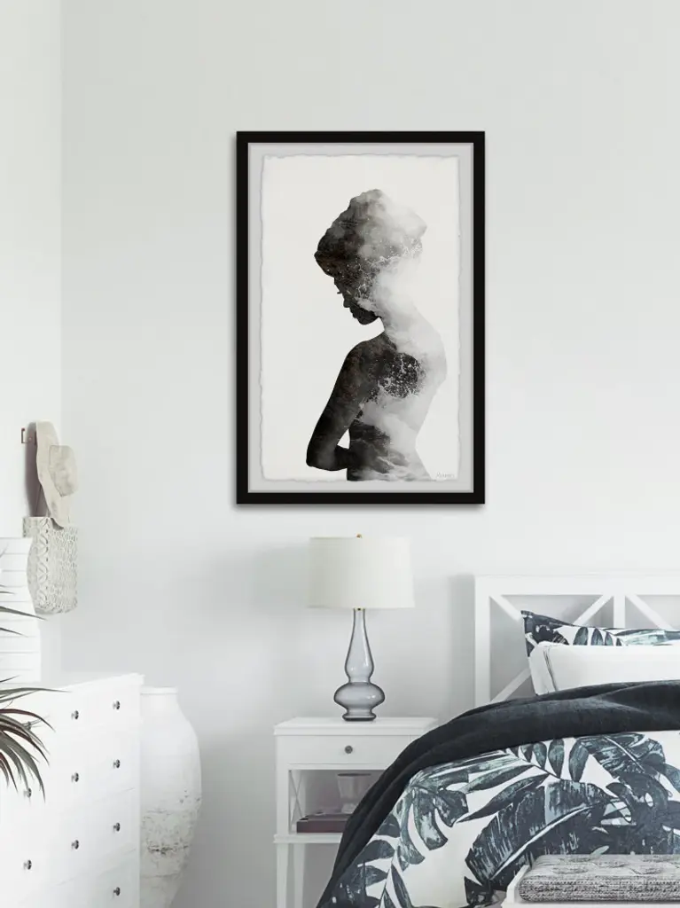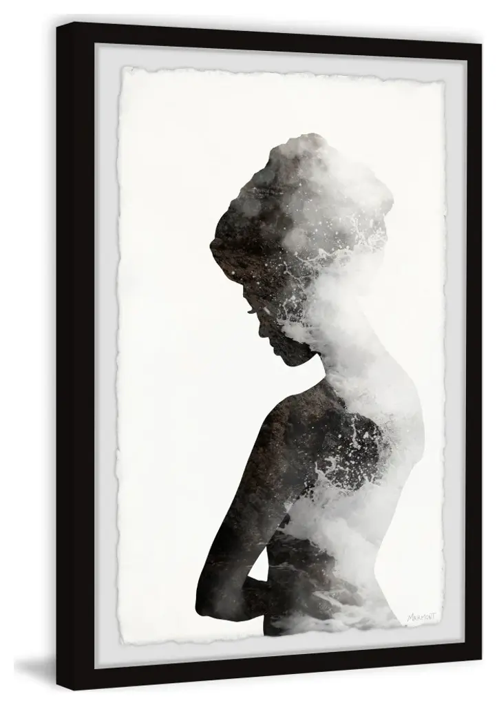 This dreamy and elegant drawing print features the silhouette of a woman- s side profile with waves crashing on the shore. Proudly printed in the USA, this piece is printed on high quality archive paper and professionally hand-framed. With wall-mounting hooks included, this artful accent is ready to hang up as soon as it reaches your front door.- Top quality Giclee print on high resolution Archive Paper- Hand cut deckled edges- High quality durable non-warping frame- Finished under shatter resistant plexiglass- Arrives ready to hang- Includes a certificate of authenticity- Printed in the USA