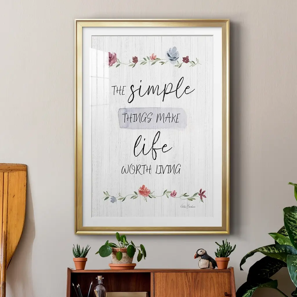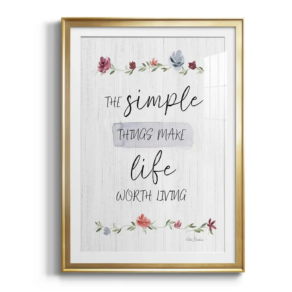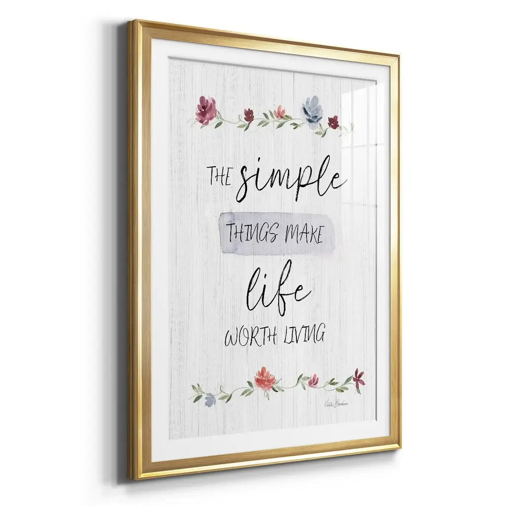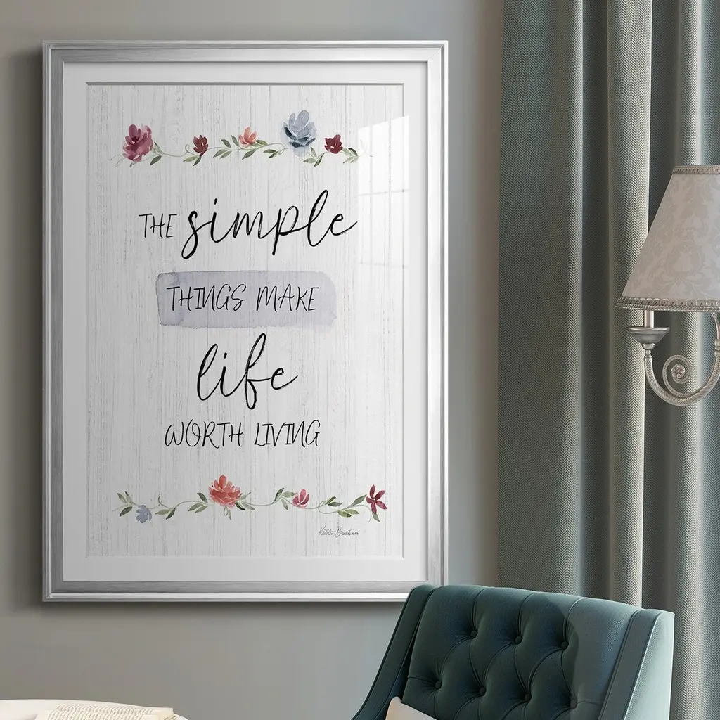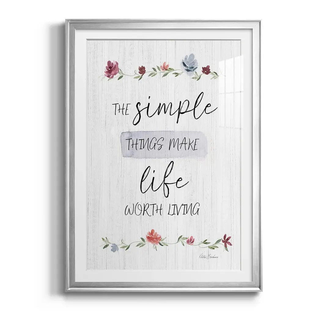The Simple Things Premium Framed Print - Ready to Hang A Premium Framed Print created to last. Framed in distressed wood and available in an array of sizes and colors Featuring a beveled a solid wood stretcher bar, each piece comes ready to hand 4 SIZES AVAILABLE 30.5''X42.5'' - Overall Size 26.5'X36.5'' - Overall Size 22.5''x30.5'' - Overall Size 18.5''x24.5'' - Overall Size Each piece is made to order. Each piece comes with hanging hardware. Made in the USA Ready to Hang Giclee Paper Print Acrylic Glass Beveled Matt Board