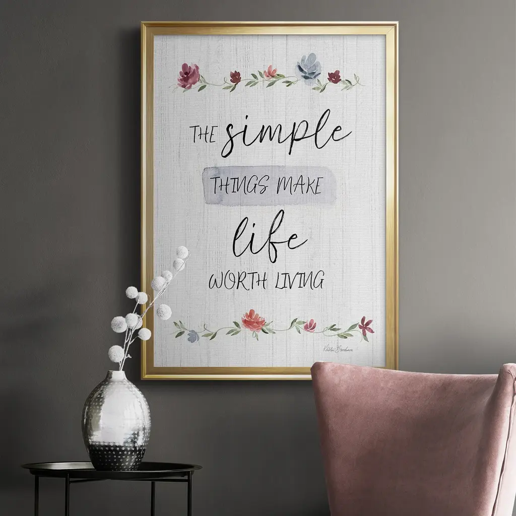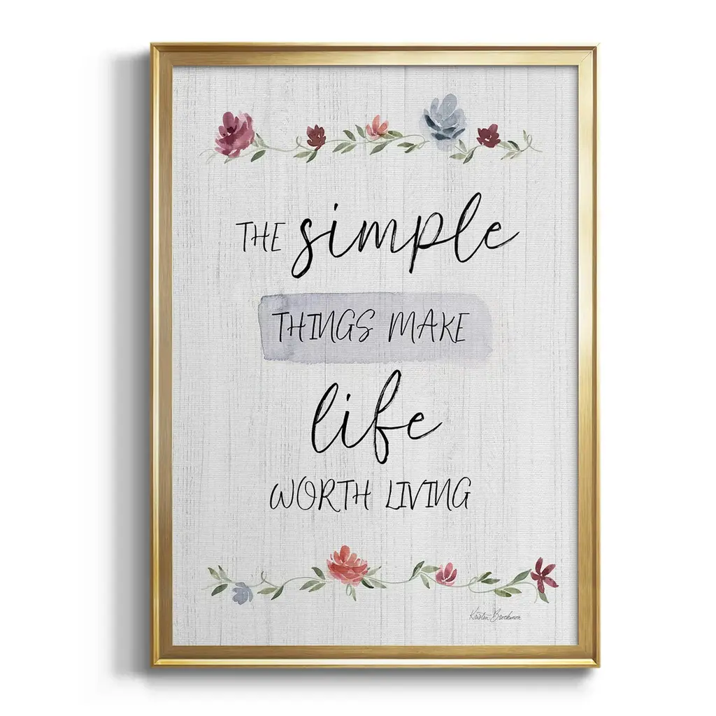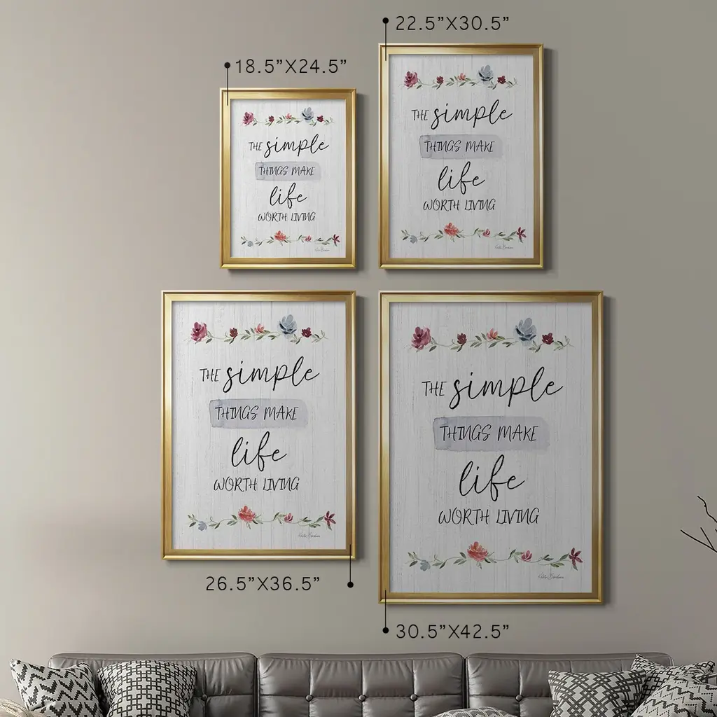 The Simple Things Premium Framed Print - Ready to Hang A Premium Framed Print created to last. Framed in distressed wood and available in an array of sizes and colors Featuring a beveled a solid wood stretcher bar, each piece comes ready to hand 4 SIZES AVAILABLE 30.5''X42.5'' - Overall Size 26.5'X36.5'' - Overall Size 22.5''x30.5'' - Overall Size 18.5''x24.5'' - Overall Size Each piece is made to order. Each piece comes with hanging hardware. Made in the USA Ready to Hang