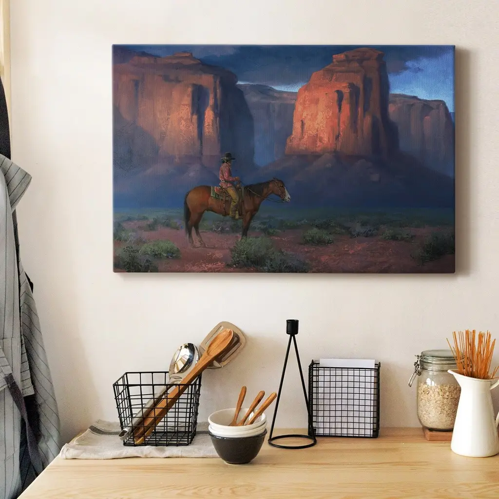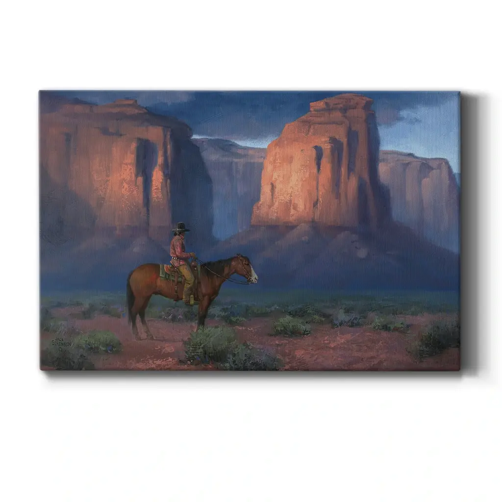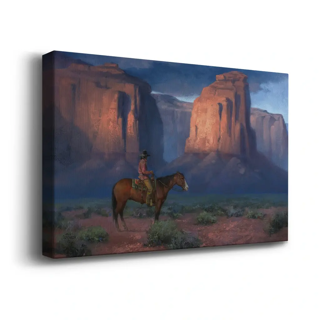 The Spell of Monument Valley Premium Gallery Wrapped Canvas - Ready to Hang A premium hand stretched gallery wrapped canvas print created to last. Featuring a beveled a solid wood stretcher bar, each piece comes ready to hand 6 SIZES AVAILABLE 8''X12'' - Overall Size 12''X18'' - Overall Size 18''X27'' - Overall Size 24''x36'' - Overall Size 32''x48'' - Overall Size 40''x60'' - Overall Size Each piece is made to order. Built to Last Each piece comes ready to hang Solid wood stretcher Fade and Water resistant Made domestically