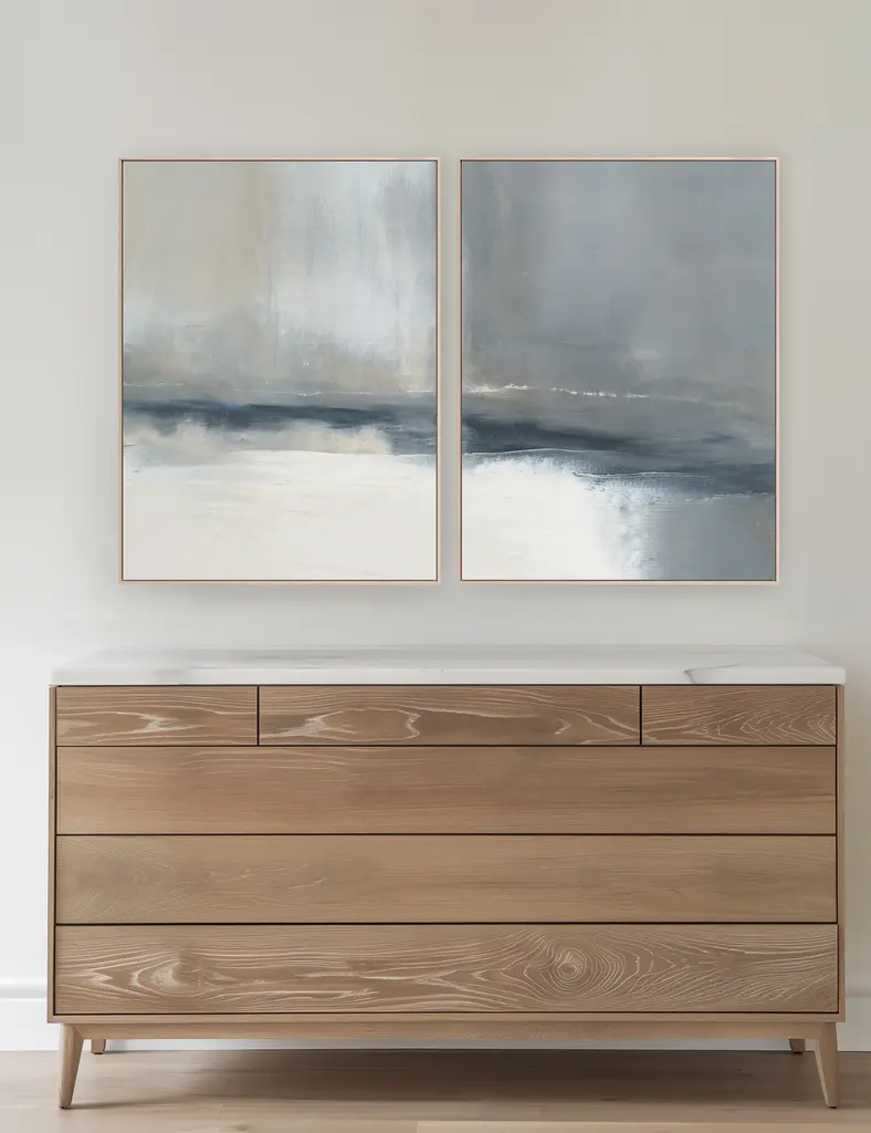 Create depth and drama in your wall decor with this diptych by Carol Benson-Cobb. A pop of white adds impact to the subdued palette, offering a subtle contrast that makes this wall art a brilliant focal point or accent piece for a thoughtfully refined space.