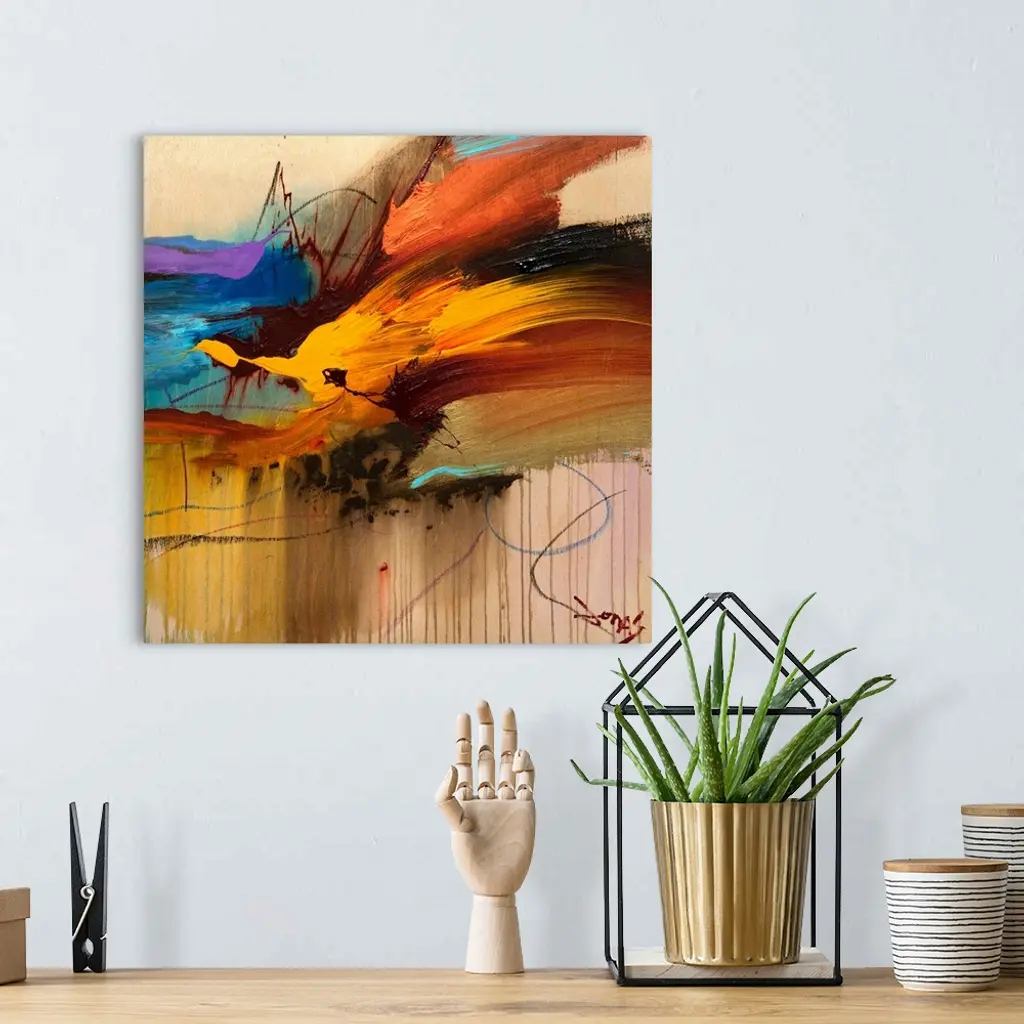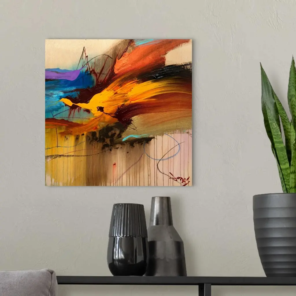 Boldly colored contemporary abstract artwork of splashed paint with visible brush strokes and paint drips by renowned Asheville, NC artist.
