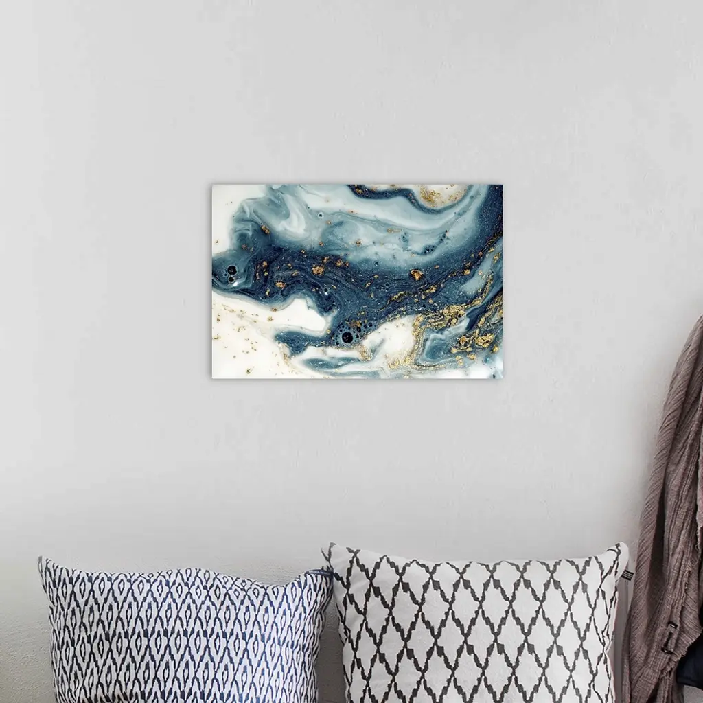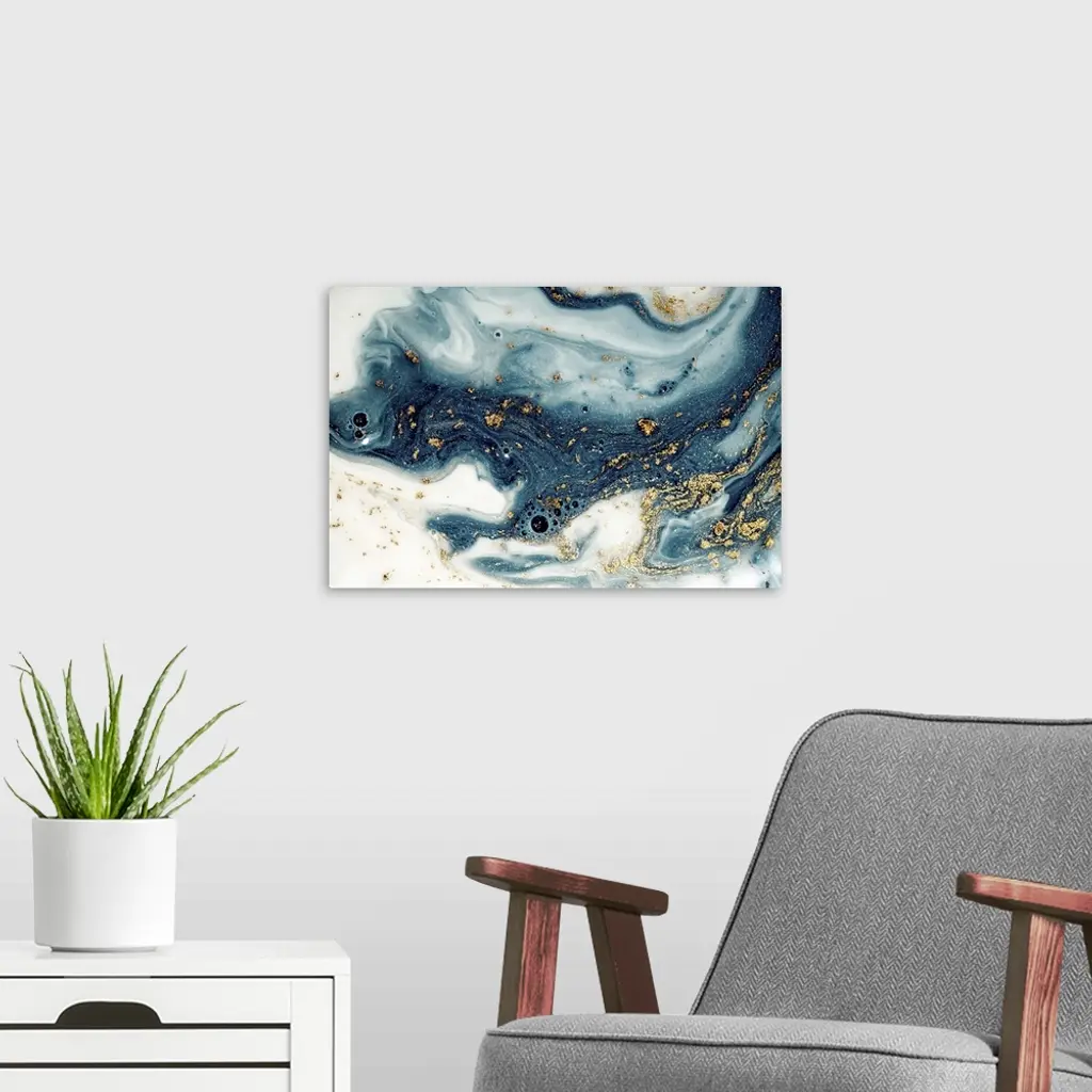 Fluid/liquid art with golden powder and sequins. Marble effect painting. Turkish paper.