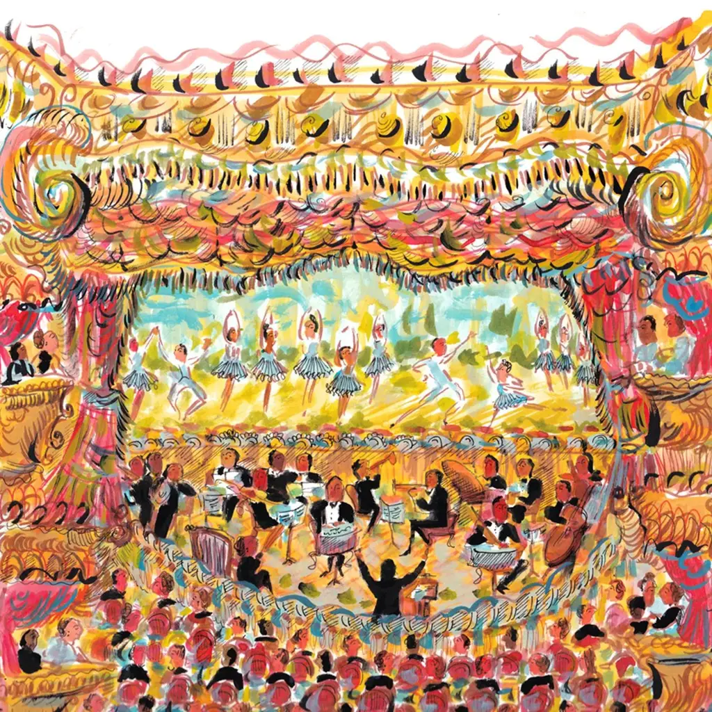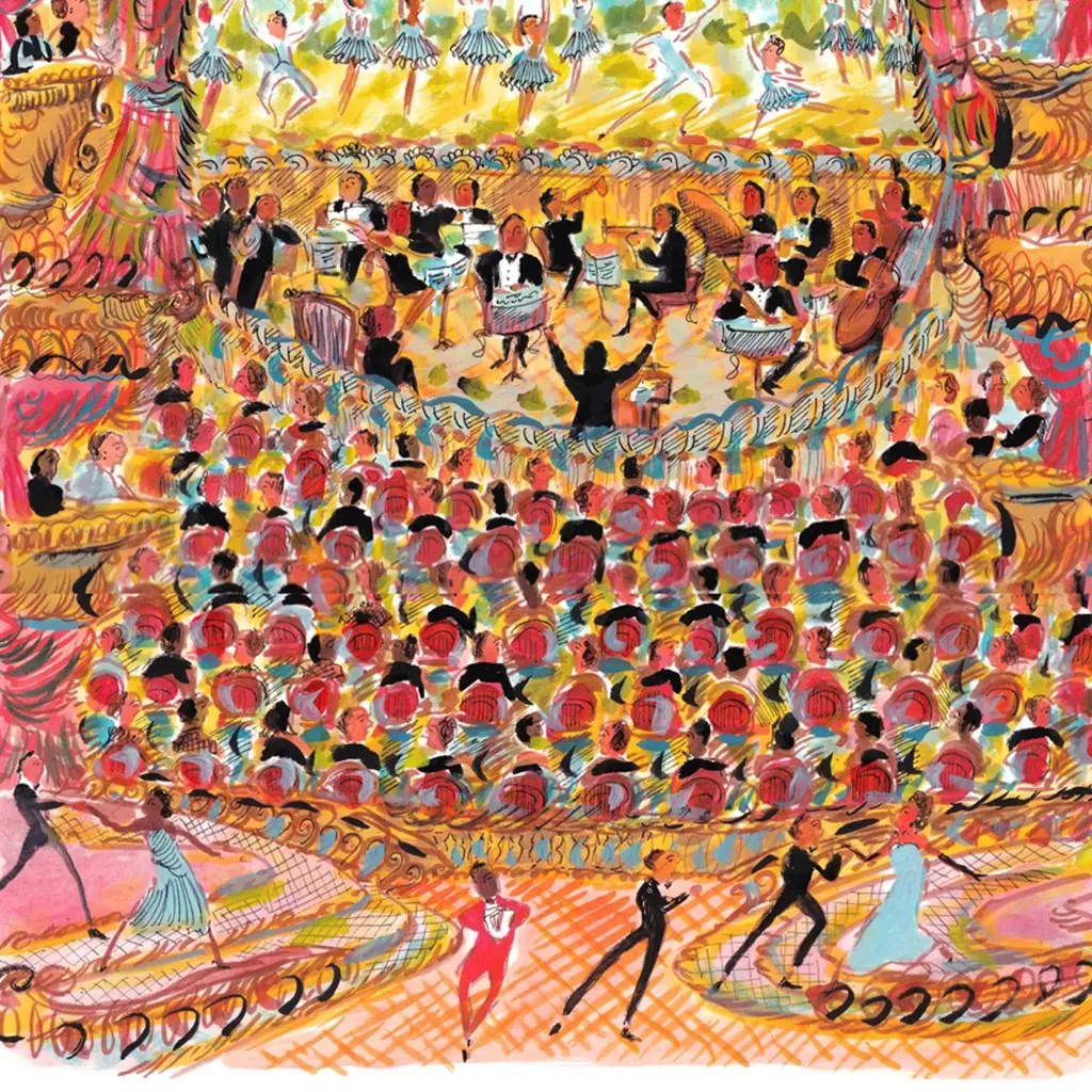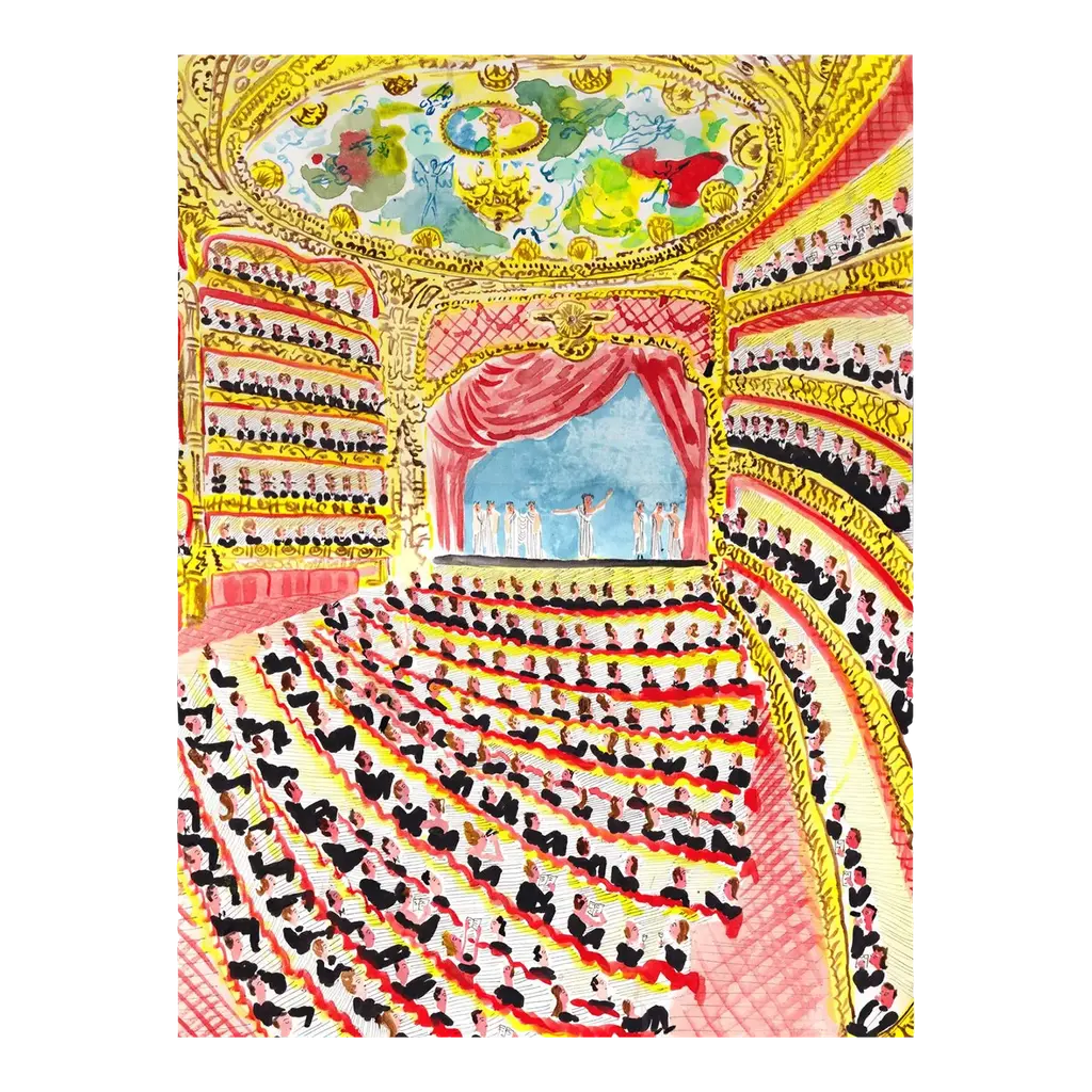 A lavish scene takes place at the opera house theater, complete with orchestra and stage actors entertaining their guests.