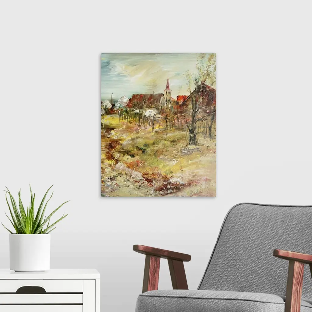 The village with church, originally an oil painting.