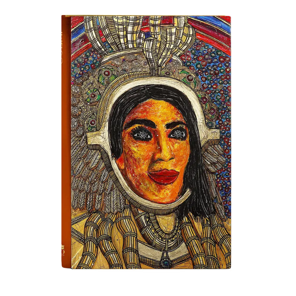 "The Grand Voyage": Three one-off books dissolving reality into a digital realm. The characters navigate a computer-generated universe disguised in costumes from different eras. Behind a medieval warrior's appearance, straight out of an early 20th century film, the Wanderer journeys into a timeless dimension that projects itself into the future through 15th-century inspiration, revealing a personal perspective on the world. The blend of different eras and the constant use of ironic elements reveals the enigmatic sides of a visionary mind, where childlike wonder and adult introspection are intertwined. The book is crafted in a luxurious original painting cover made of aluminum, acrylic and gold leaf. The 3 books in the D'ORO D'ART collection are works of art by artist Federico Solmi, and are edited by Barbara London and Valentino Catricalà. The cover is an original painting, as is the video art work they contain.