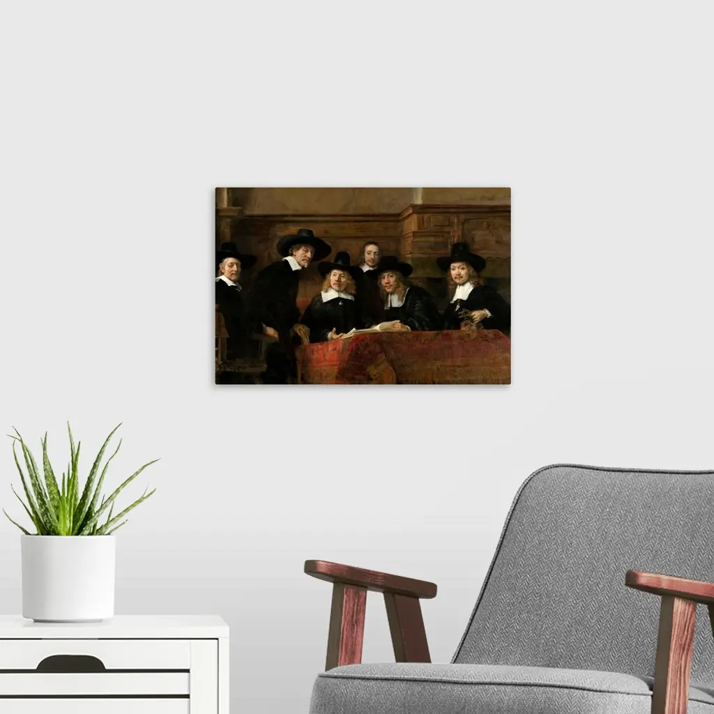 Painting by Rembrandt of the Wardens of the Amsterdam Drapers' Guild, Known as The Syndic.