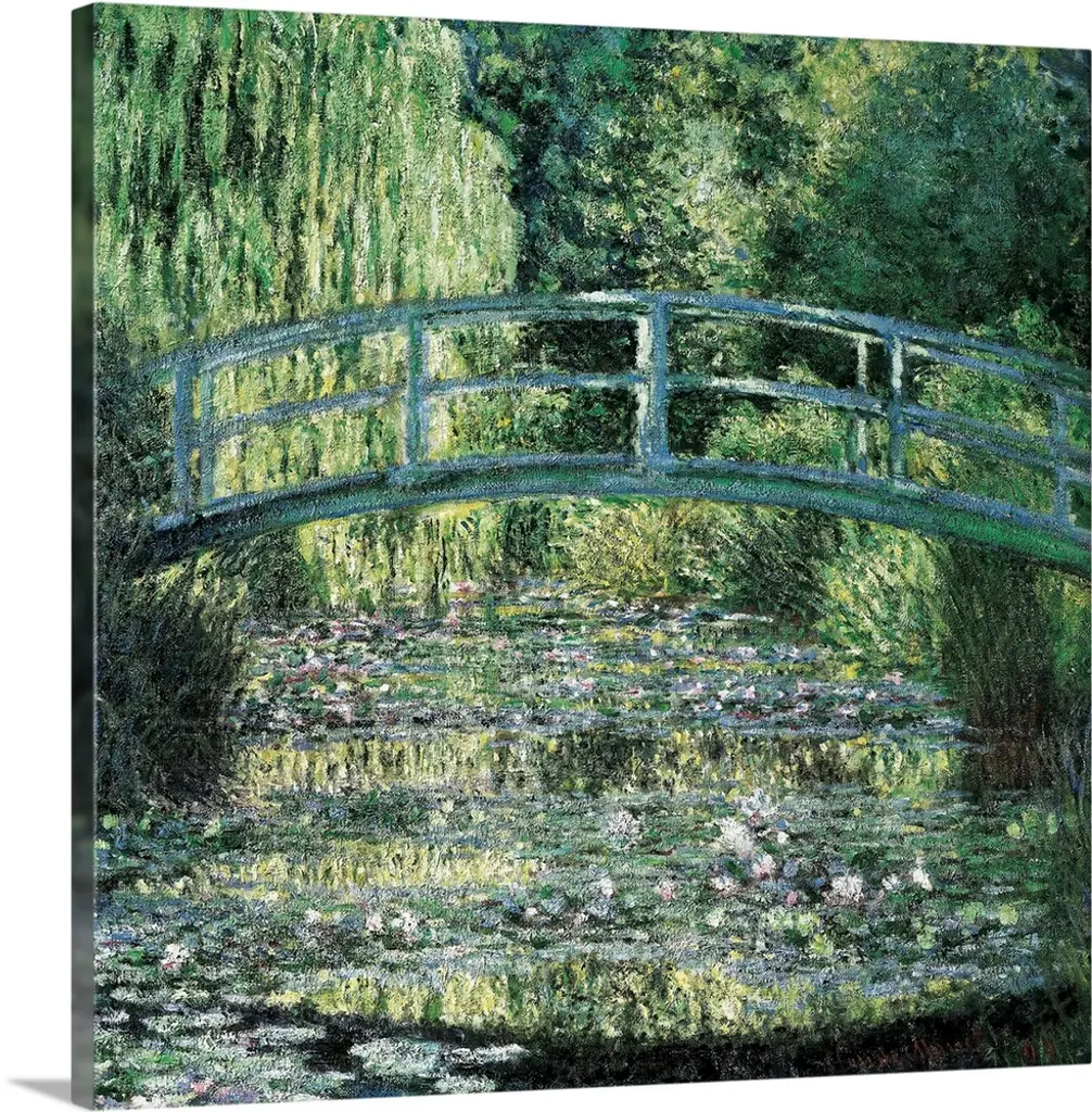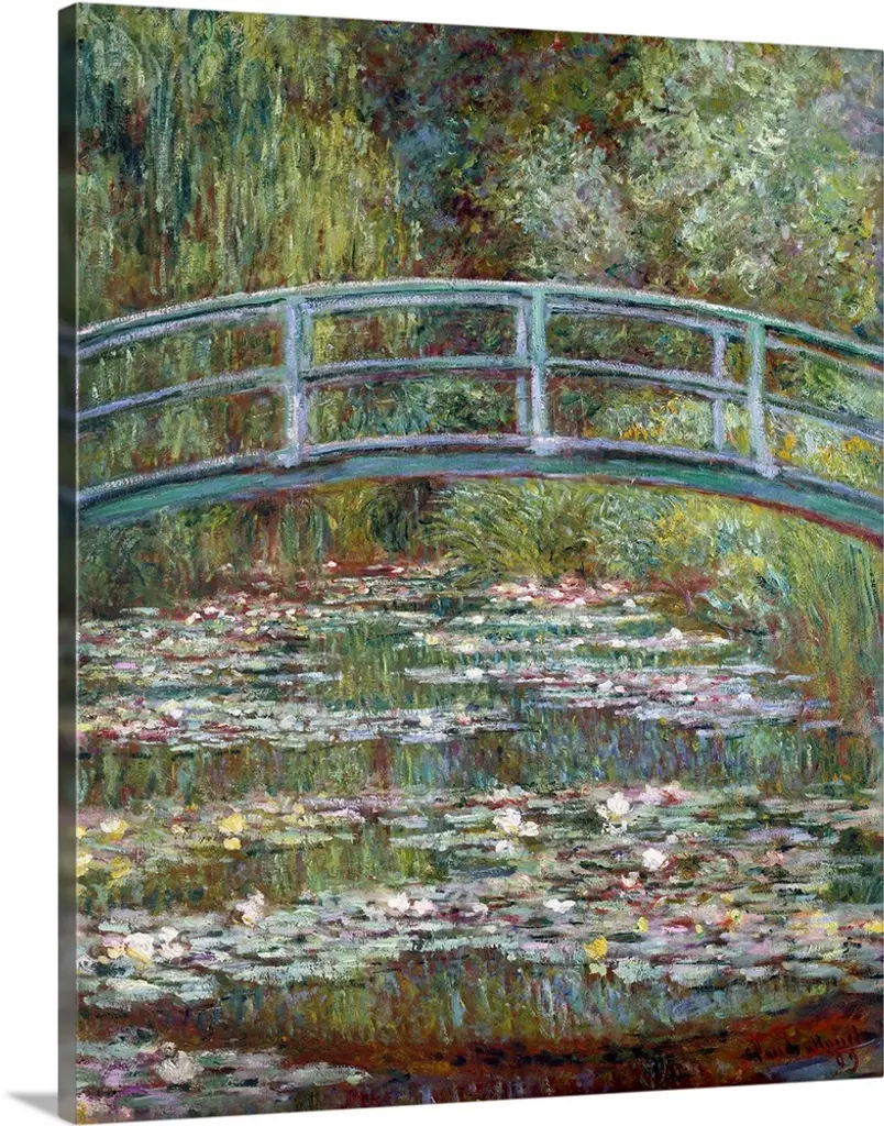Title: The Waterlily Pond - Pink Harmony, 1899Artist: Claude MonetProduct Type: Canvas ArtSize: 14" x 19"Made in the USA.Claude Monet was a founder of French impressionist painting. He is considered the most consistent and prolific practitioner of the movement's philosophy of expressing one's perceptions before nature, especially as applied to plein-air landscape painting. Monet himself was enchanted by the vitality of outdoor settings as shown in many of his works.This 14" x 19" canvas art is ready to hang. Giclee (jee-clay) is an advanced printmaking process for creating high quality fine art reproductions. The attainable excellence that Giclee printmaking affords makes the reproduction virtually indistinguishable from the original piece. The result is wide acceptance of Giclee by galleries, museums, and private collectors. Gallery wrap is a method of stretching an artist's canvas so that the canvas wraps around the sides and is secured to a hidden, wooden frame. This method of stretching and preparing a canvas allows for a frameless presentation of the finished print.