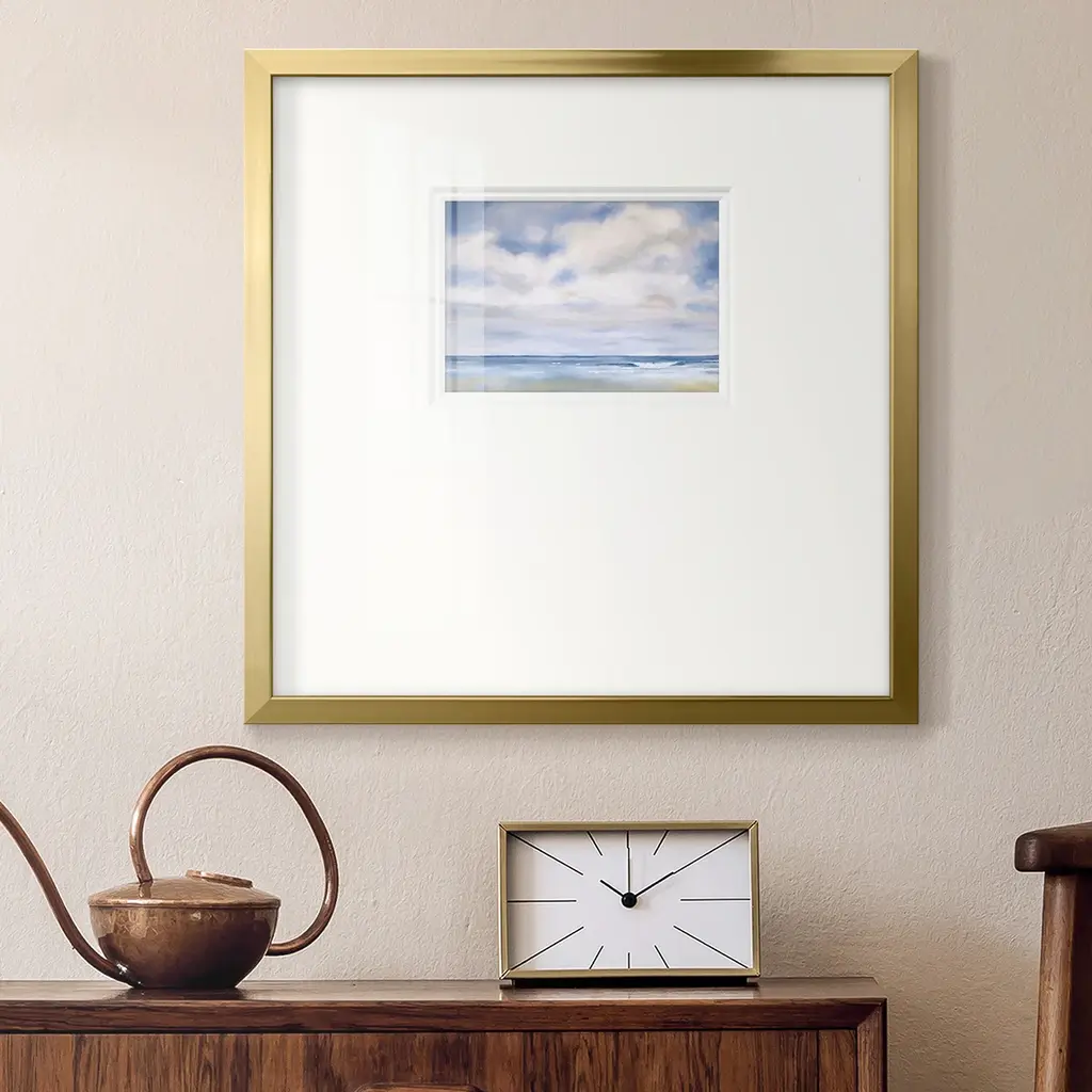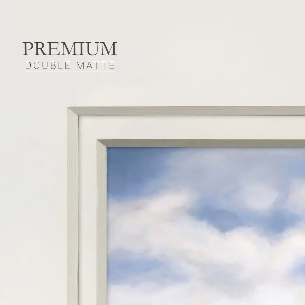 The WavePremium Framed Print A framed cold pressed paper print featuring superior double matting and quality frame. 2 SIZES AVAILABLE 16''X16''' - Overall Size 20''X20''' - Overall Size Each piece is made to order. Each piece comes with hanging hardware. Made in the USA Ready to Hang Giclee Paper Print Plexiglass Beveled Matt Board Double Matte Board