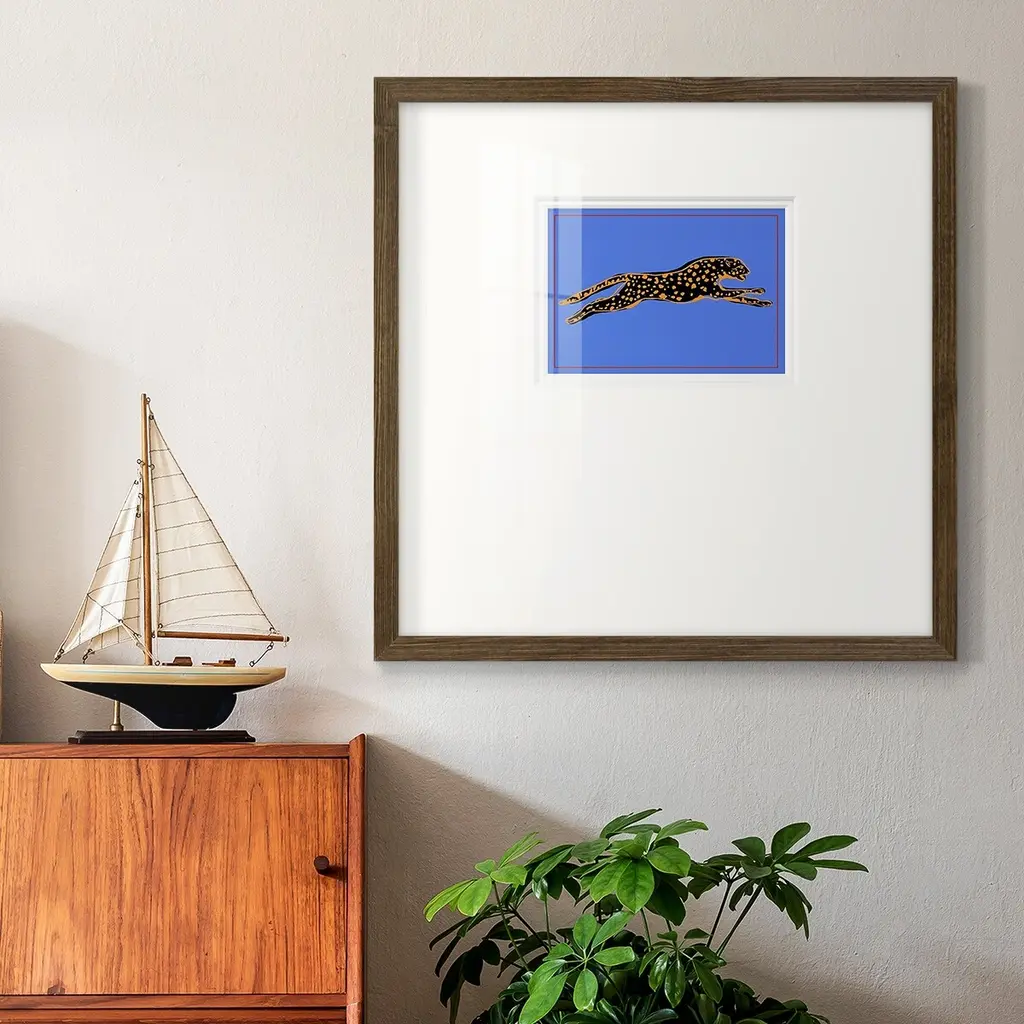 The Wild Leopard IIPremium Framed Print A framed cold pressed paper print featuring superior double matting and quality frame. 2 SIZES AVAILABLE 16''X16''' - Overall Size 20''X20''' - Overall Size Each piece is made to order. Each piece comes with hanging hardware. Made in the USA Ready to Hang Giclee Paper Print Plexiglass Beveled Matt Board Double Matte Board