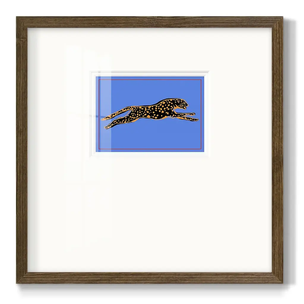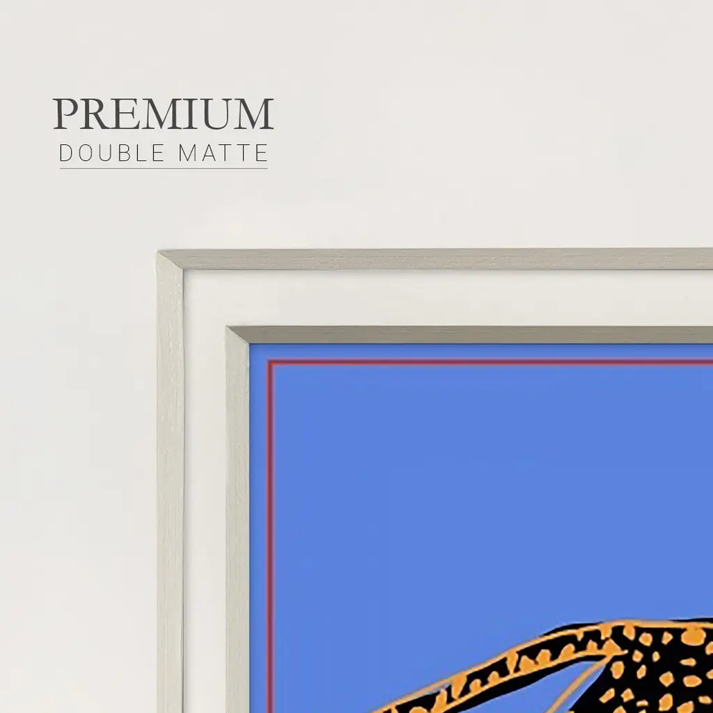 The Wild Leopard IIPremium Framed Print A framed cold pressed paper print featuring superior double matting and quality frame. 2 SIZES AVAILABLE 16''X16''' - Overall Size 20''X20''' - Overall Size Each piece is made to order. Each piece comes with hanging hardware. Made in the USA Ready to Hang Giclee Paper Print Plexiglass Beveled Matt Board Double Matte Board