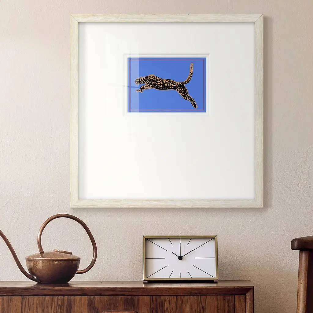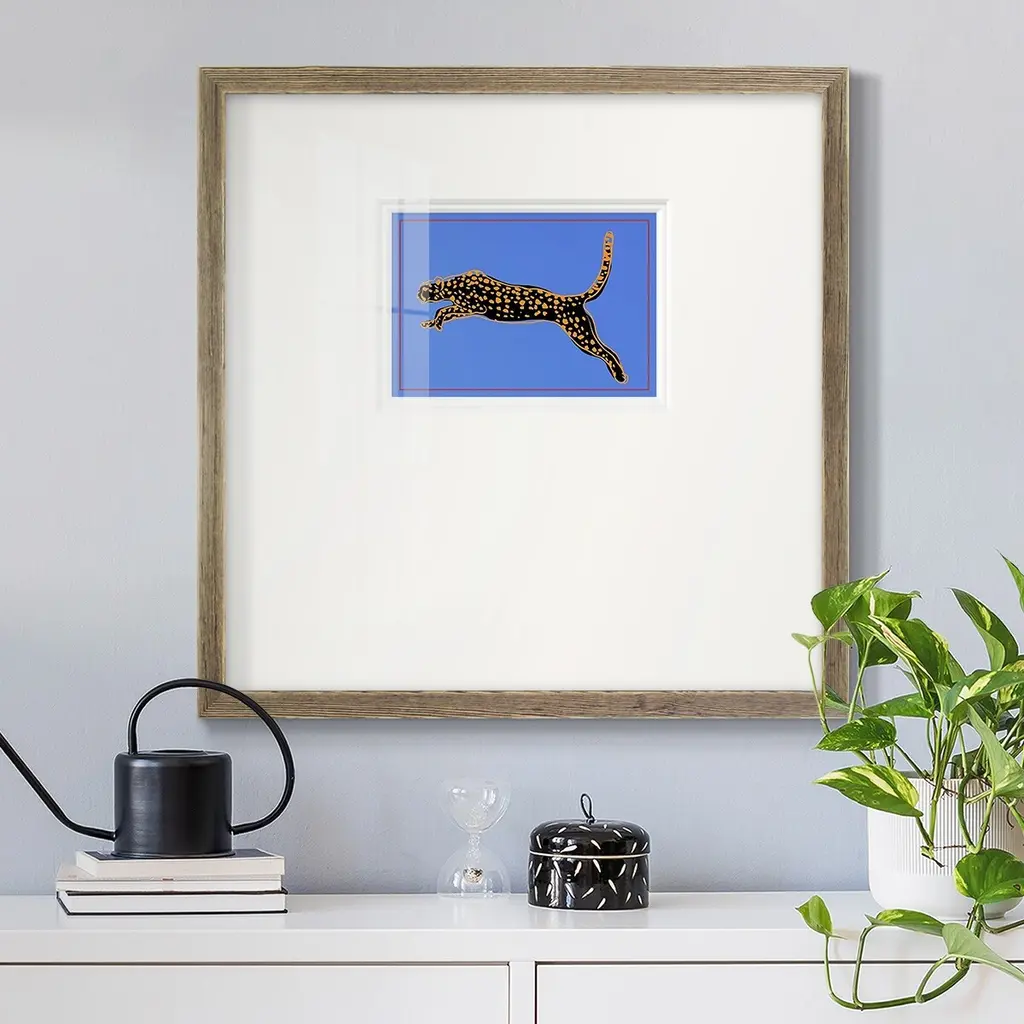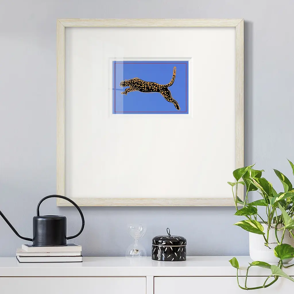 The Wild Leopard IPremium Framed Print A framed cold pressed paper print featuring superior double matting and quality frame. 2 SIZES AVAILABLE 16''X16''' - Overall Size 20''X20''' - Overall Size Each piece is made to order. Each piece comes with hanging hardware. Made in the USA Ready to Hang Giclee Paper Print Plexiglass Beveled Matt Board Double Matte Board