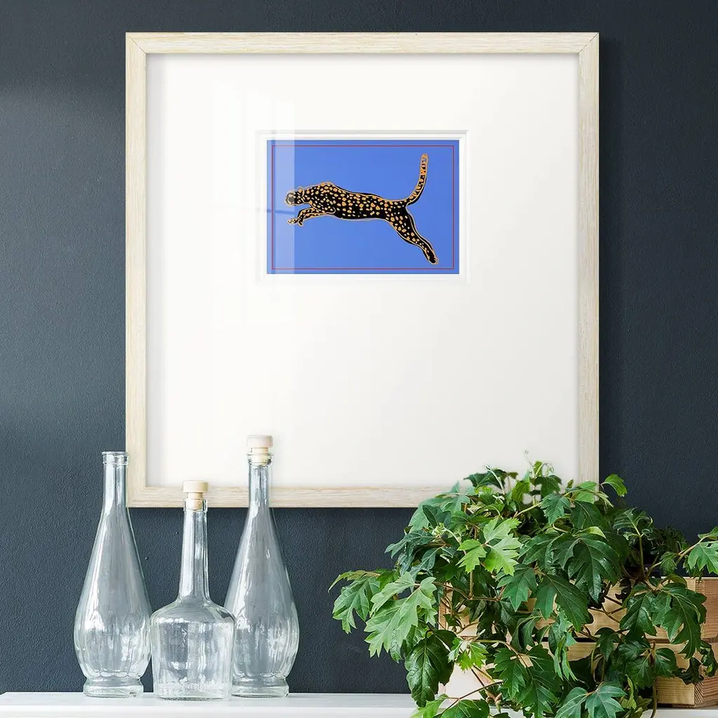 The Wild Leopard IPremium Framed Print A framed cold pressed paper print featuring superior double matting and quality frame. 2 SIZES AVAILABLE 16''X16''' - Overall Size 20''X20''' - Overall Size Each piece is made to order. Each piece comes with hanging hardware. Made in the USA Ready to Hang Giclee Paper Print Plexiglass Beveled Matt Board Double Matte Board