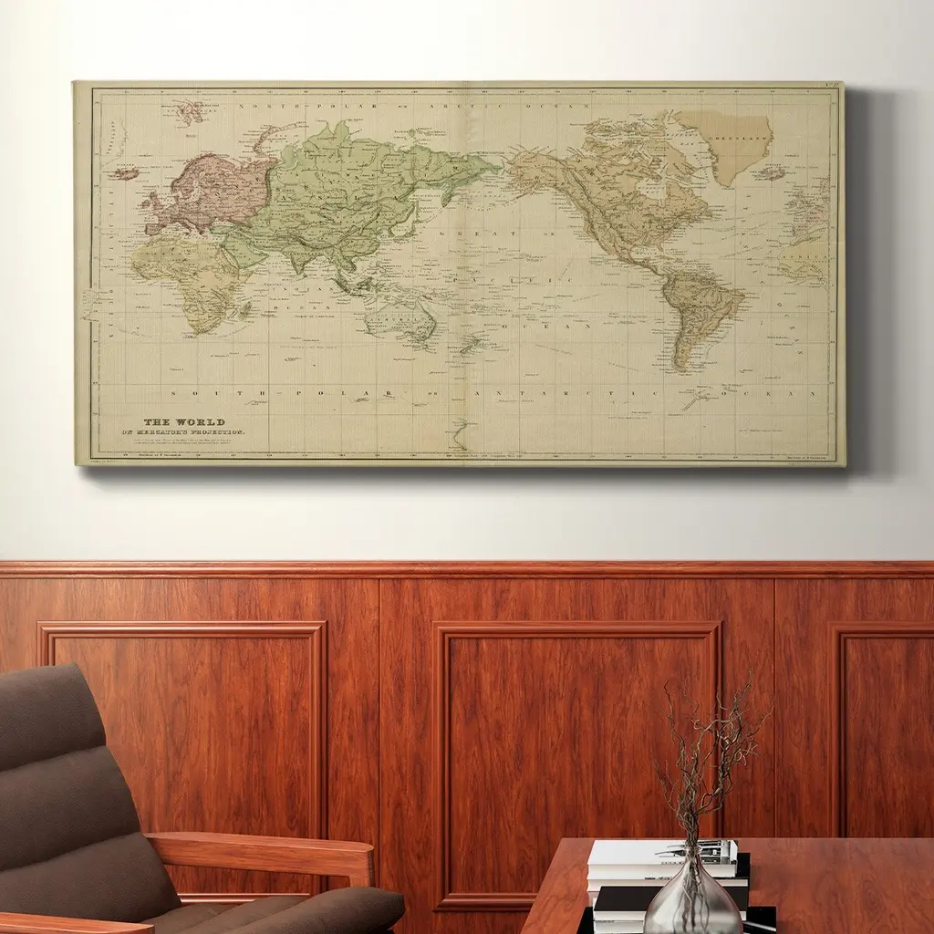 The World On Mercators Projection K- Premium Gallery Wrapped Canvas - Ready To Hang - 12x24