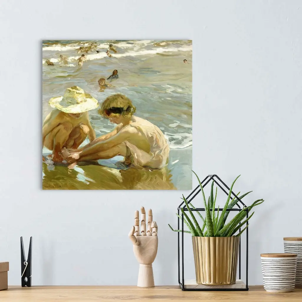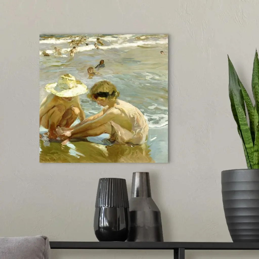 The Wounded Foot, by Joaquin Sorolla y Bastida, 1909, Spanish painting, oil on canvas. This painting's casual cropping adds a sense of immediacy, as does the artist's painterly capture the momentary effects of light, water, and people in motion