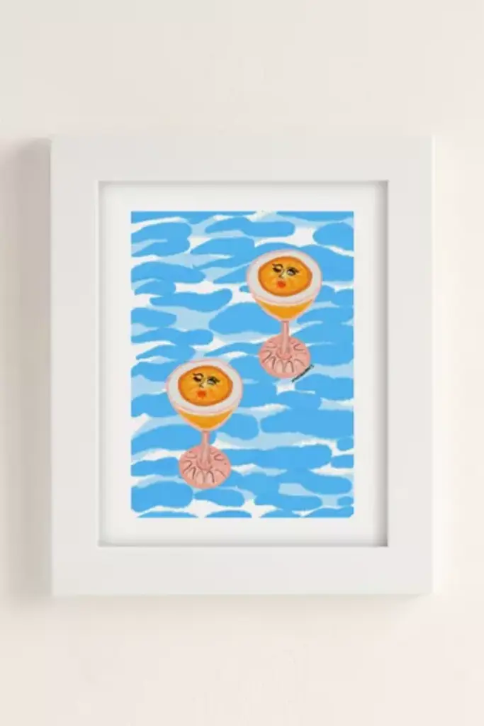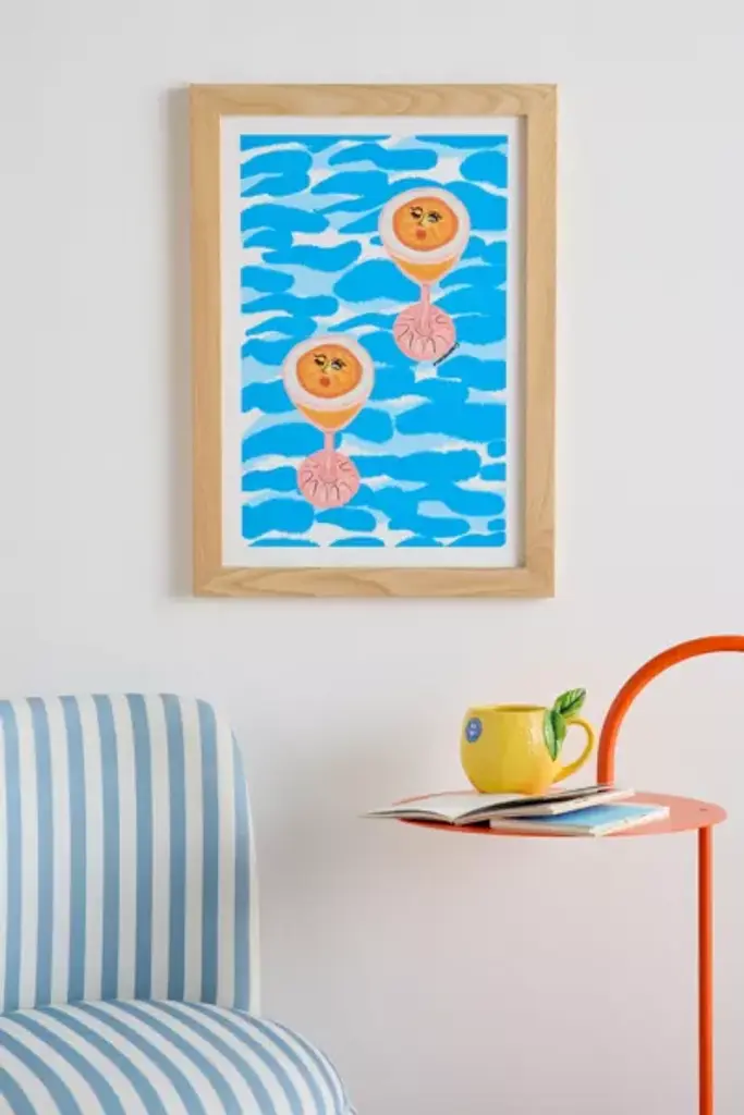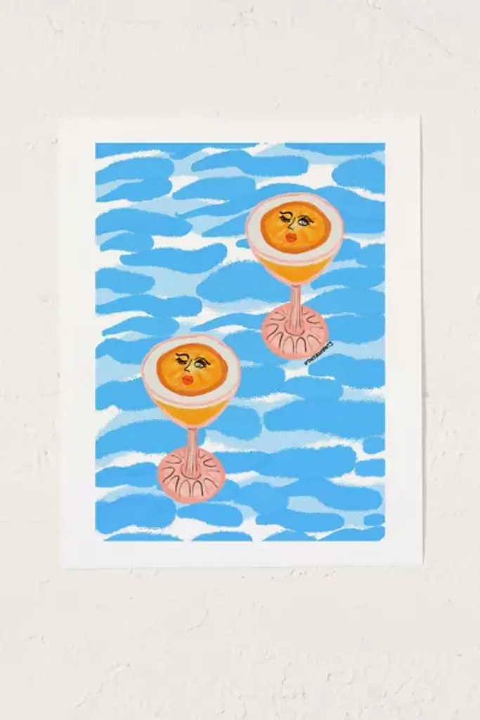 Art print by theebouffants featuring chic cocktails at the pool. Printed on archival paper made from cotton pressed in Italian mills, this high-quality art print is available in sizes and frames just right for your space. First select your frame (or go frameless), then select your size. **About the Frames** \- The exact width of each frame may vary slightly \- All frames are manufactured in the US \- Matte frames are durable poly \- Wood frames are recycled wood \- All are fitted with protective plexiglass \- Finished with wood moldings, archival backer and protective bumpers **Size** \- Available in multiple sizes \- Use the Size Guides to find the size that fits your space **Content + Care** \- Wipe clean \- Made in the USA