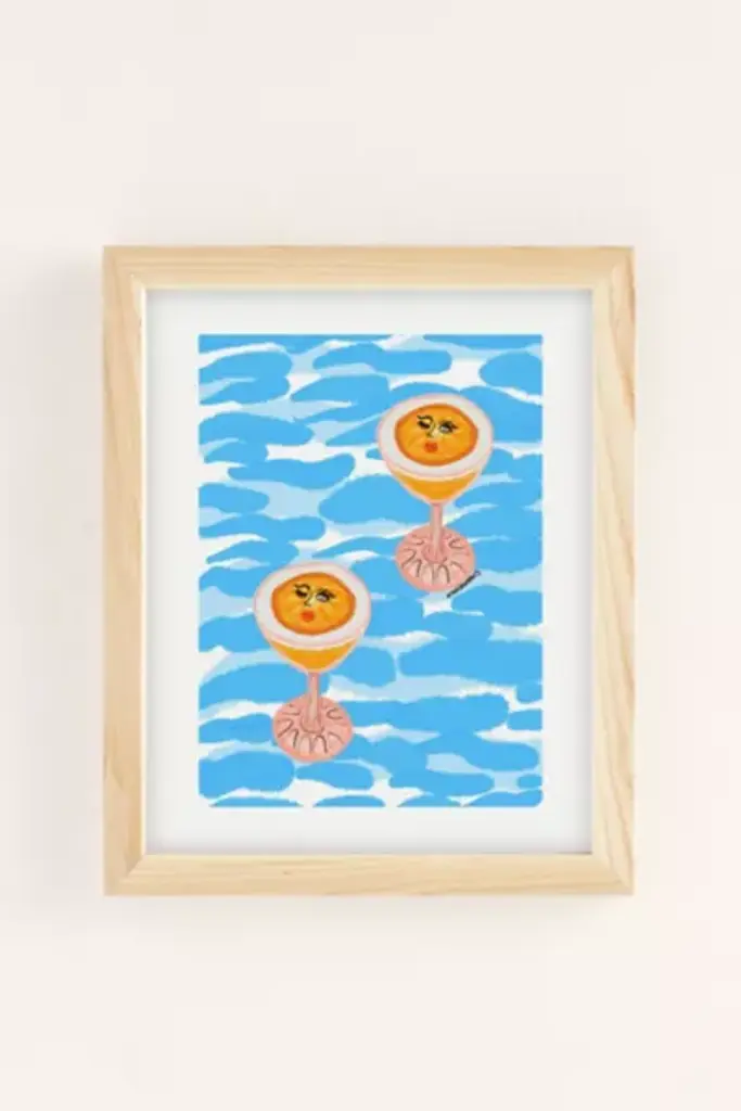 Art print by theebouffants featuring chic cocktails at the pool. Printed on archival paper made from cotton pressed in Italian mills, this high-quality art print is available in sizes and frames just right for your space. First select your frame (or go frameless), then select your size. **About the Frames** \- The exact width of each frame may vary slightly \- All frames are manufactured in the US \- Matte frames are durable poly \- Wood frames are recycled wood \- All are fitted with protective plexiglass \- Finished with wood moldings, archival backer and protective bumpers **Size** \- Available in multiple sizes \- Use the Size Guides to find the size that fits your space **Content + Care** \- Wipe clean \- Made in the USA