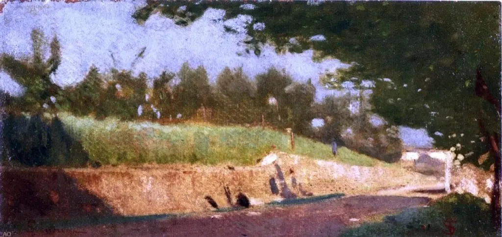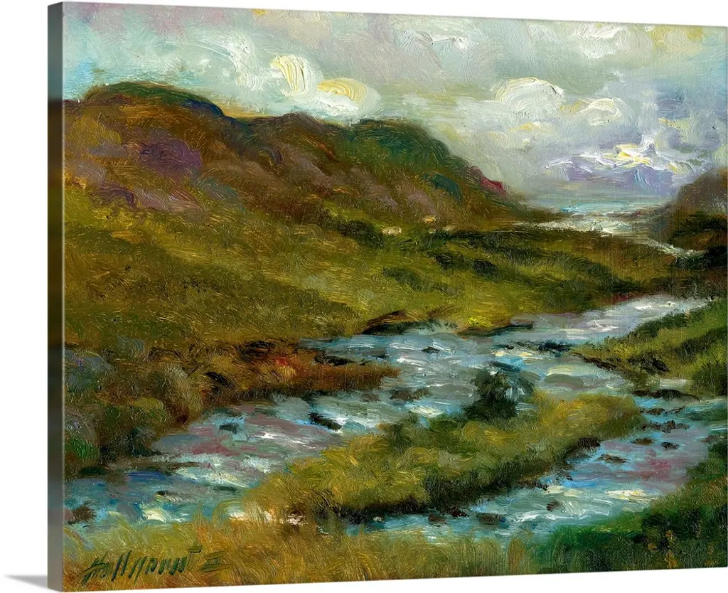 18" x 27" Theodore Clement Steele The Muscatatuck gallery wrap premium canvas print reproduced to meet museum quality standards. Our Museum quality canvas prints are produced using high-precision print technology for a more accurate reproduction printed on high quality canvas with fade-resistant, archival inks. Our progressive business model allows us to offer works of art to you at the best wholesale pricing, significantly less than art gallery prices, affordable to all. This artwork is hand stretched onto wooden stretcher bars by one of our expert framers. Our gallery wrap canvas print comes with hardware, ready to hang on your wall. We present a comprehensive collection of exceptional canvas art reproductions by Theodore Clement Steele.