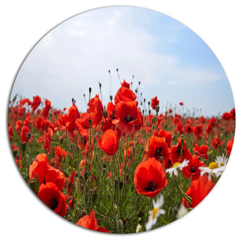 Thick Red Poppy Flower Field, Flower Round Wall Art, 23"