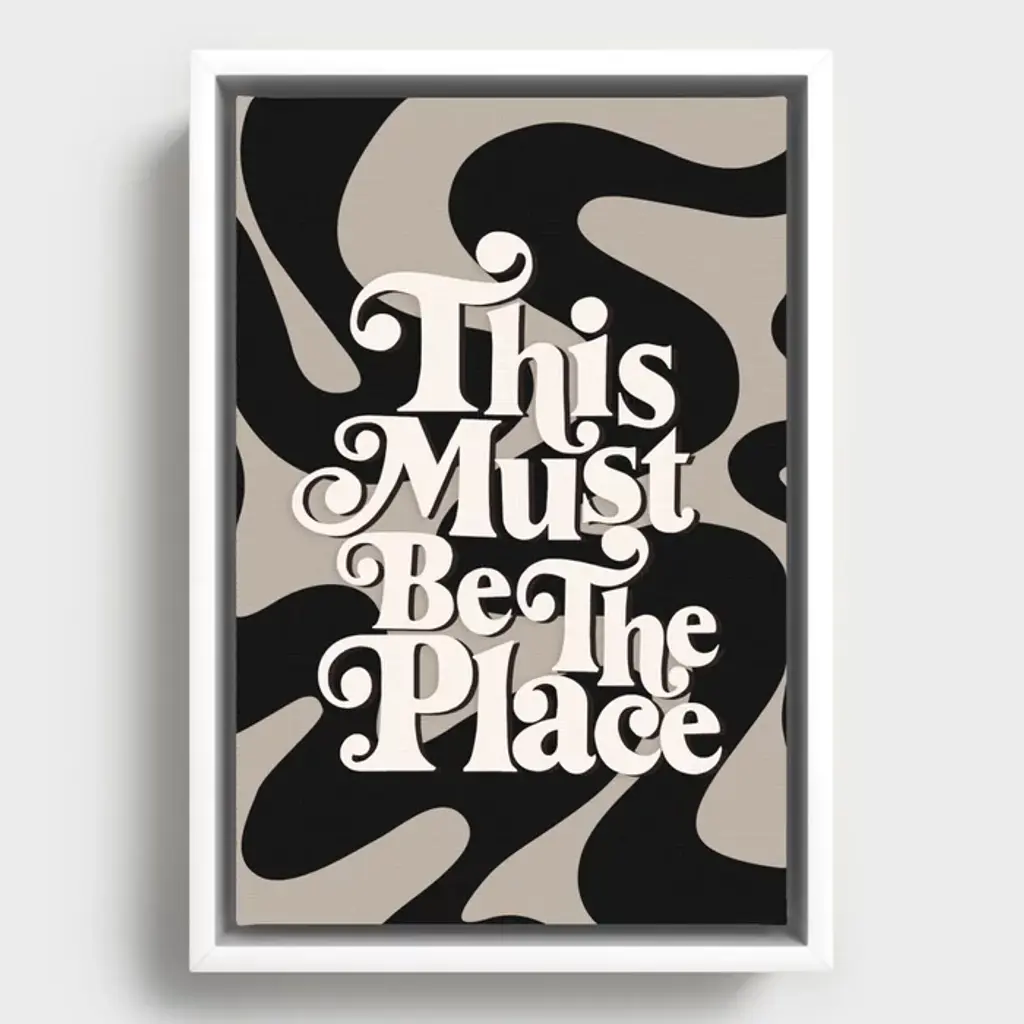 This Must Be The Place - 70s, Vintage, Retro, Abstract Pattern (Black & Beige) Canvas Print