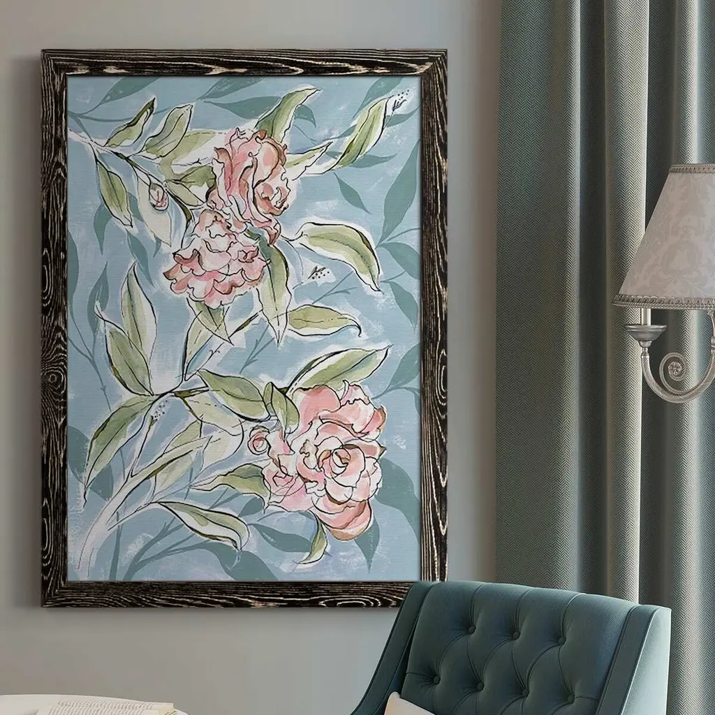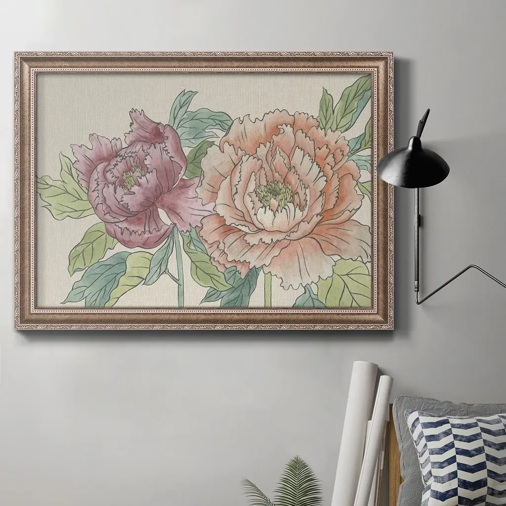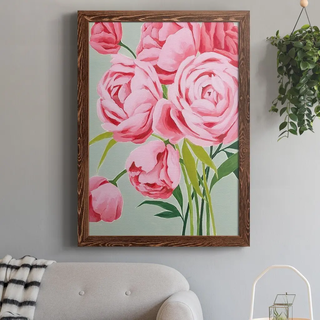 This Year's Peonies I-Premium Framed Canvas - Ready To Hang - 27.5x37.5 - Walnut