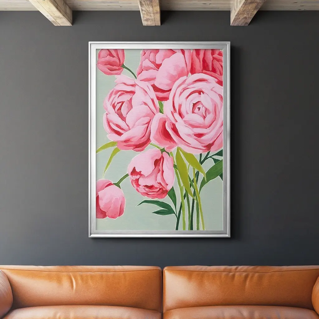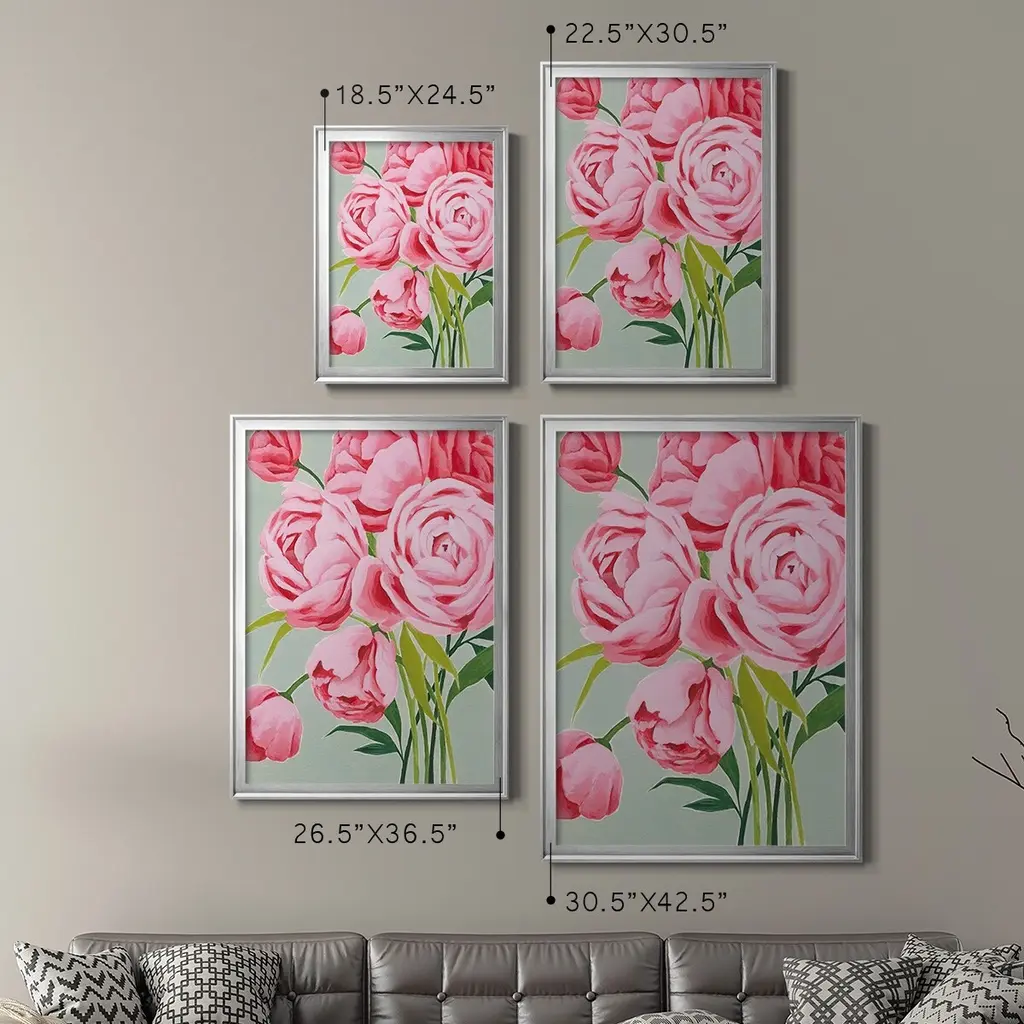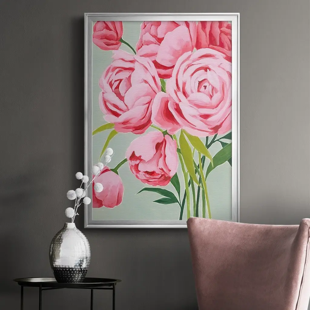 This Year's Peonies I Premium Framed Print - Ready to Hang A Premium Framed Print created to last. Framed in distressed wood and available in an array of sizes and colors Featuring a beveled a solid wood stretcher bar, each piece comes ready to hand 4 SIZES AVAILABLE 30.5''X42.5'' - Overall Size 26.5'X36.5'' - Overall Size 22.5''x30.5'' - Overall Size 18.5''x24.5'' - Overall Size Each piece is made to order. Each piece comes with hanging hardware. Made in the USA Ready to Hang