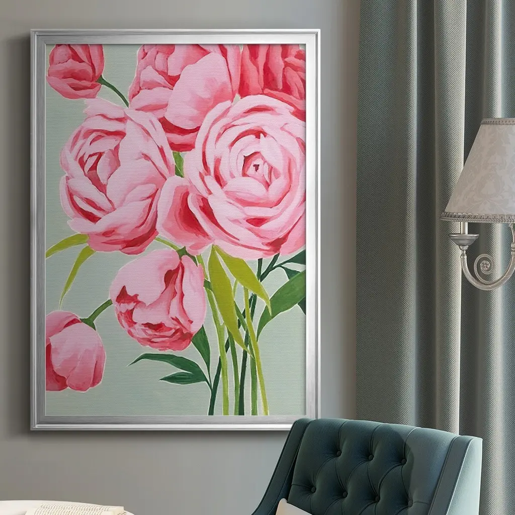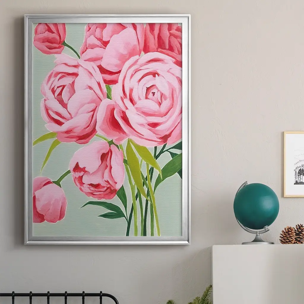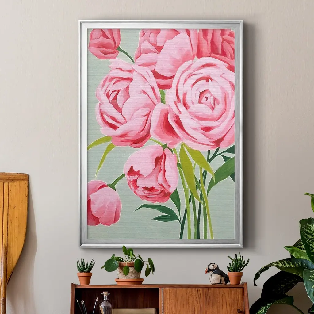 This Year's Peonies I Premium Framed Print - Ready to Hang A Premium Framed Print created to last. Framed in distressed wood and available in an array of sizes and colors Featuring a beveled a solid wood stretcher bar, each piece comes ready to hand 4 SIZES AVAILABLE 30.5''X42.5'' - Overall Size 26.5'X36.5'' - Overall Size 22.5''x30.5'' - Overall Size 18.5''x24.5'' - Overall Size Each piece is made to order. Each piece comes with hanging hardware. Made in the USA Ready to Hang