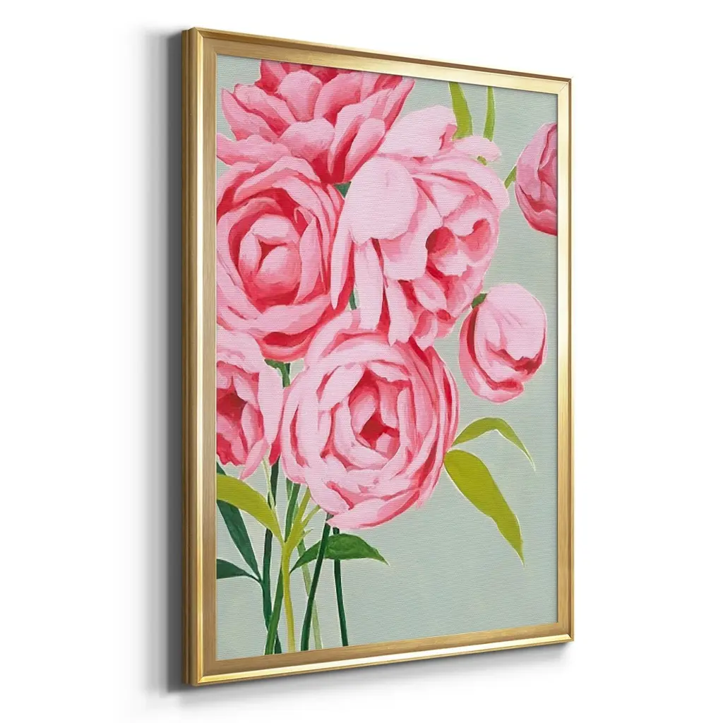 This Year's Peonies II Premium Framed Print - Ready to Hang A Premium Framed Print created to last. Framed in distressed wood and available in an array of sizes and colors Featuring a beveled a solid wood stretcher bar, each piece comes ready to hand 4 SIZES AVAILABLE 30.5''X42.5'' - Overall Size 26.5'X36.5'' - Overall Size 22.5''x30.5'' - Overall Size 18.5''x24.5'' - Overall Size Each piece is made to order. Each piece comes with hanging hardware. Made in the USA Ready to Hang