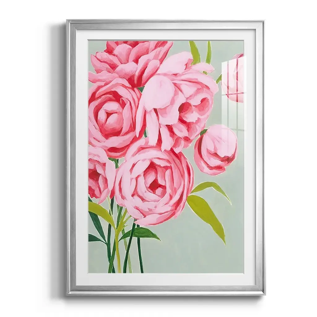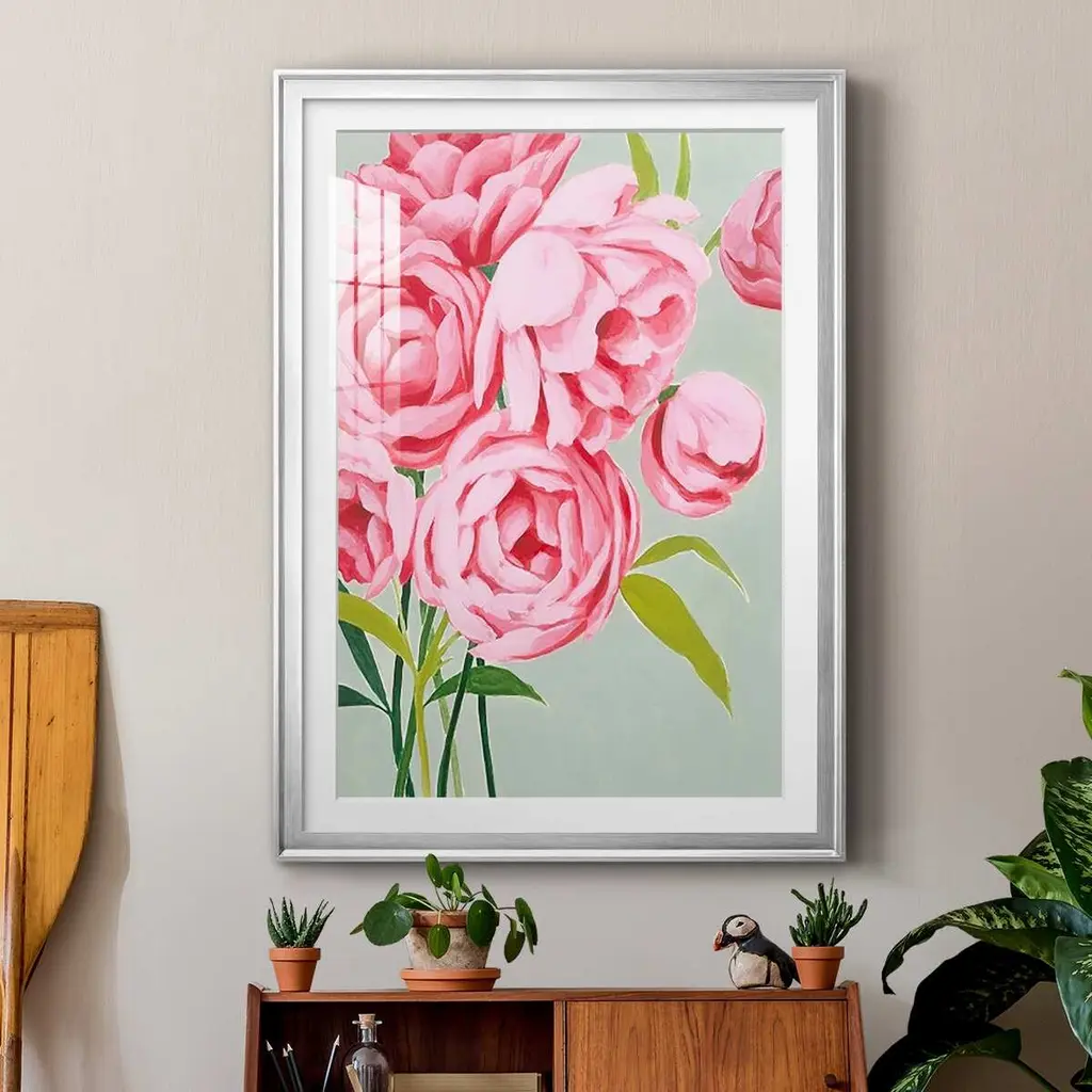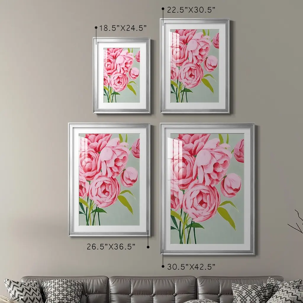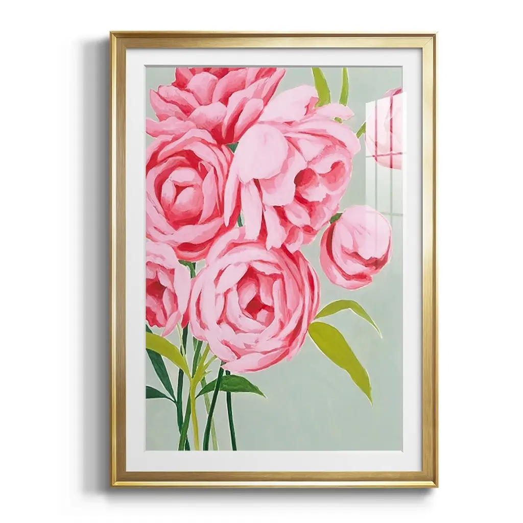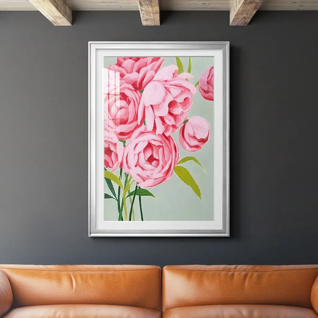 This Year's Peonies II Premium Framed Print - Ready to Hang A Premium Framed Print created to last. Framed in distressed wood and available in an array of sizes and colors Featuring a beveled a solid wood stretcher bar, each piece comes ready to hand 4 SIZES AVAILABLE 30.5''X42.5'' - Overall Size 26.5'X36.5'' - Overall Size 22.5''x30.5'' - Overall Size 18.5''x24.5'' - Overall Size Each piece is made to order. Each piece comes with hanging hardware. Made in the USA Ready to Hang Giclee Paper Print Acrylic Glass Beveled Matt Board