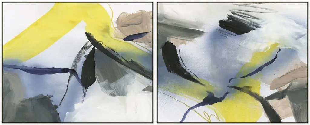 Seen first at One Kings Lane: This abstract series from Thom Filicia features two works with bold brushstrokes in complementary hues. Printed on gallery-wrapped canvas with artist enhancements for added texture, each piece is displayed in a wood floater frame and arrives ready to hang.