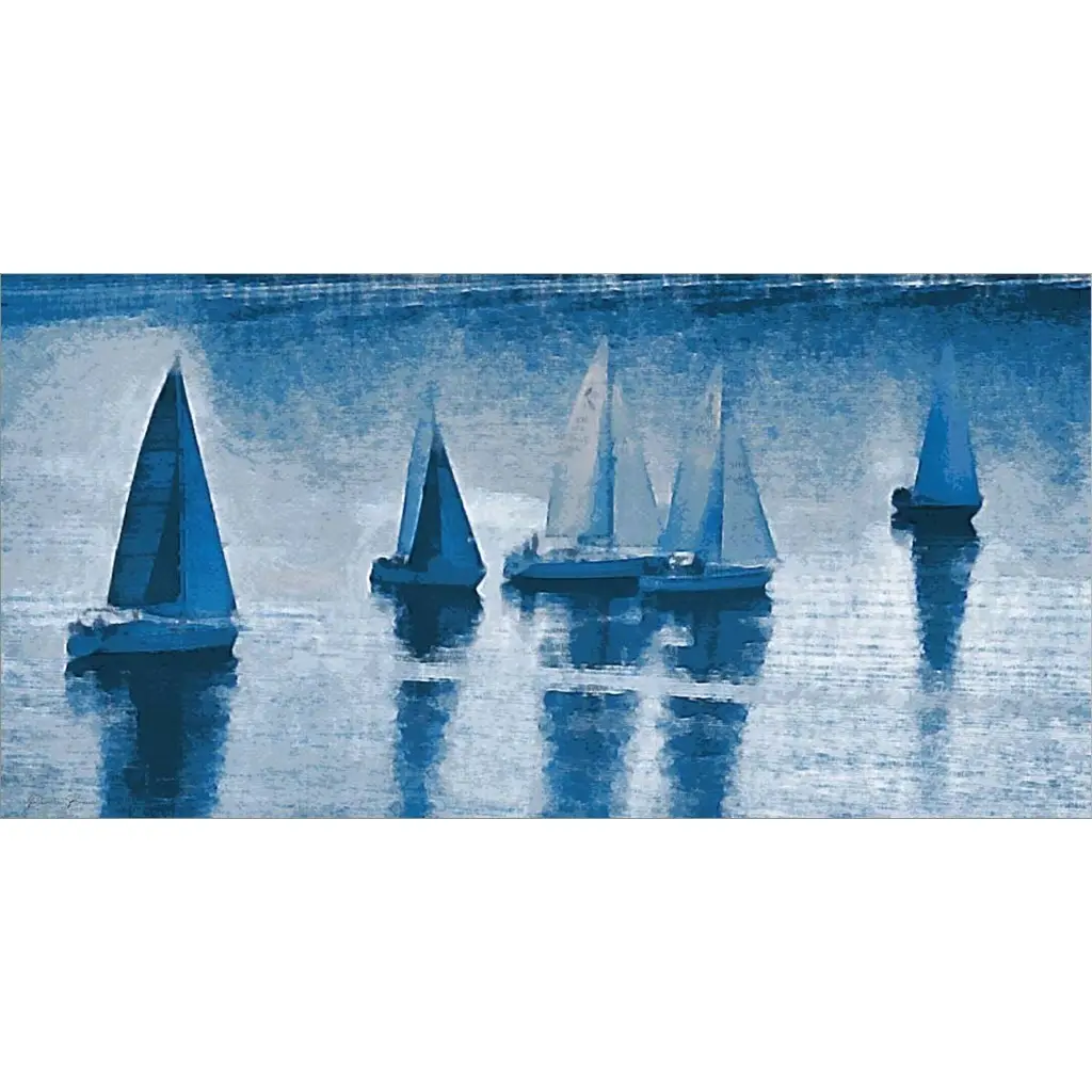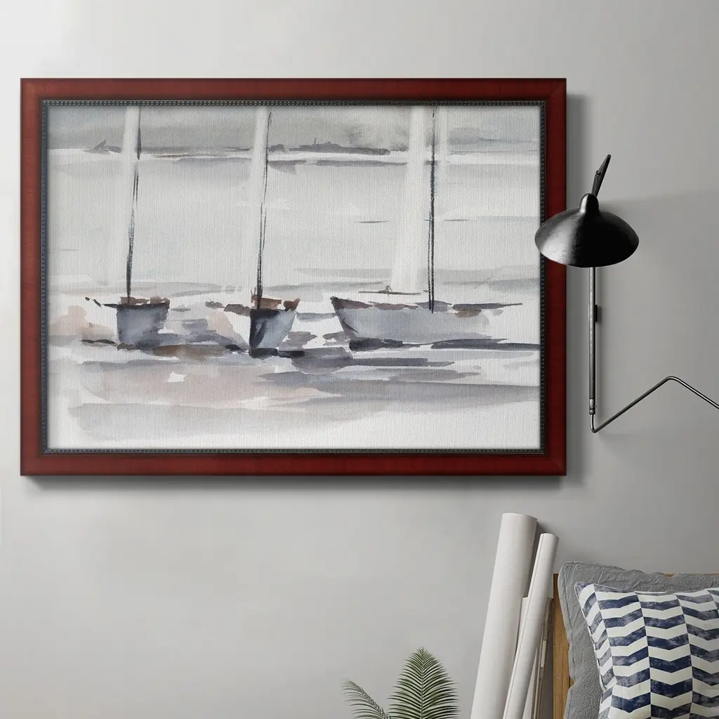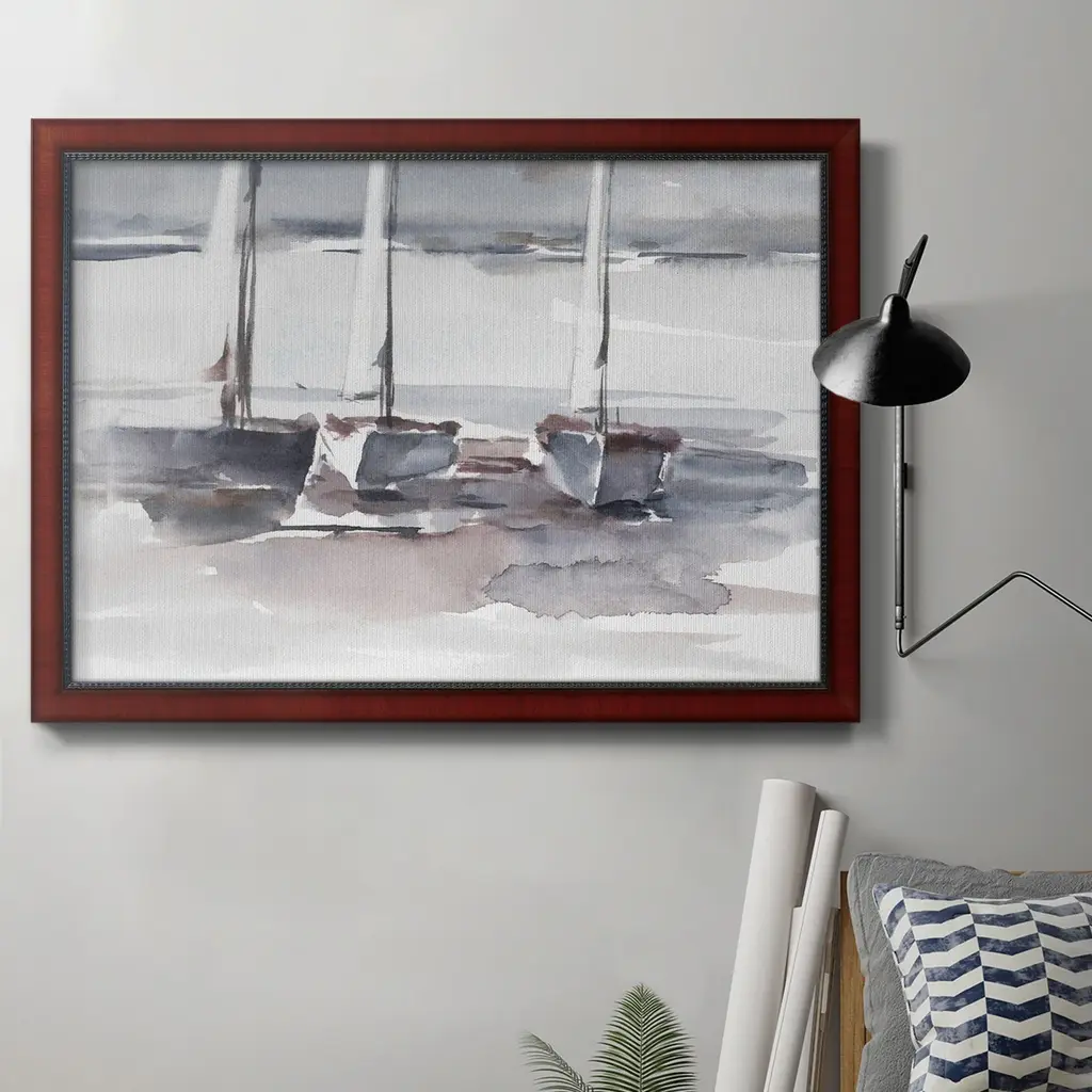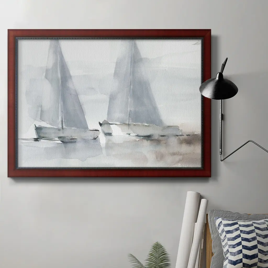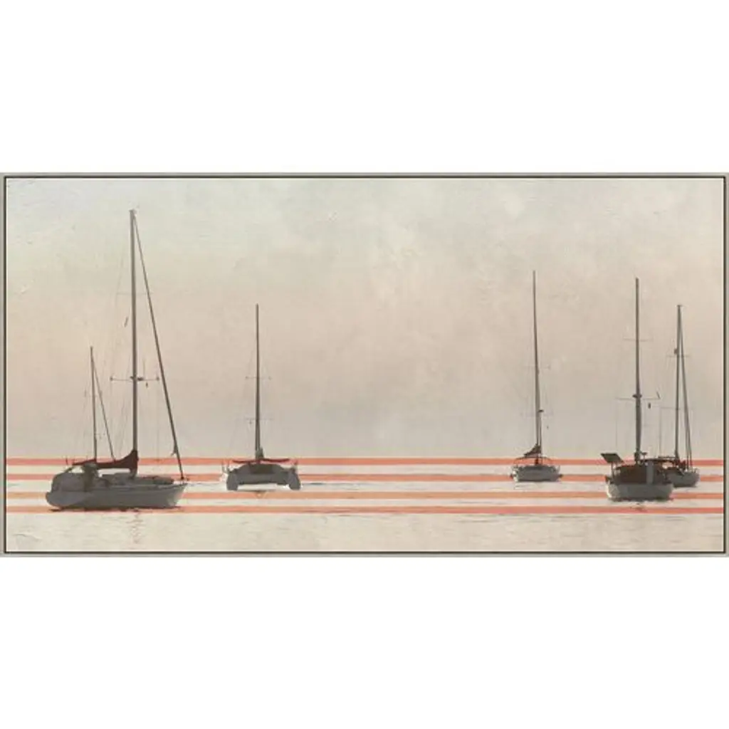 Seen first at One Kings Lane: This work from Thom Filicia depicts sailboats in the distance; the desaturated palette adds mystery and a touch of elegance. Printed on gallery-wrapped canvas with artist enhancements for added texture, this piece is presented in a gray floater frame and arrives ready to hang.